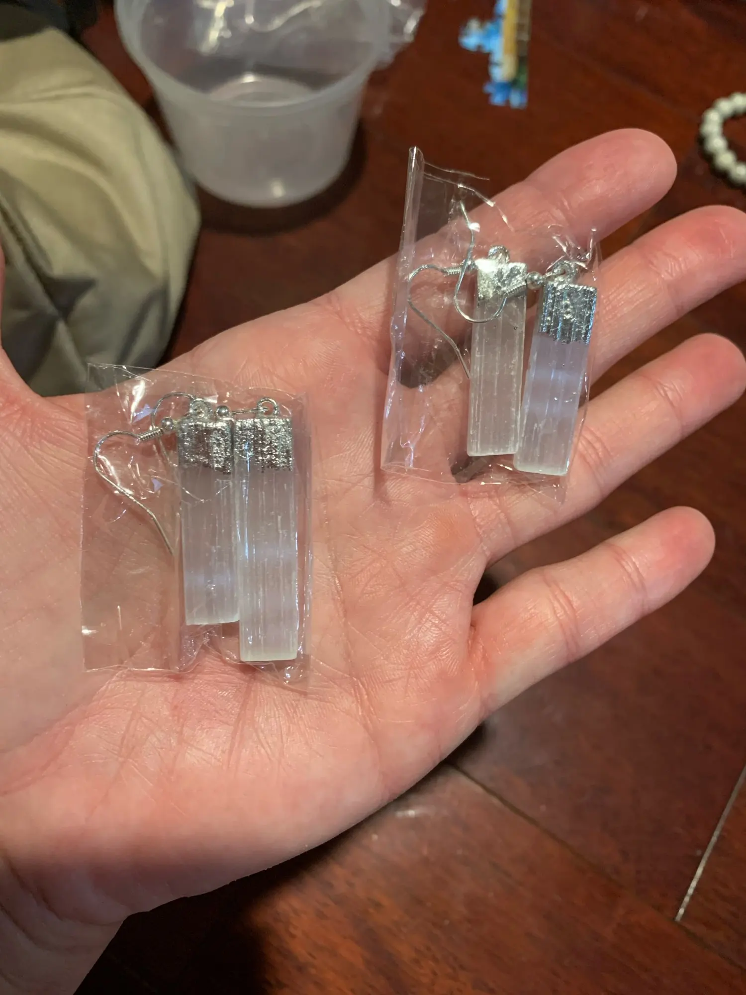 Серьги-подвески с натуральным камнем из селенита, 1 пара