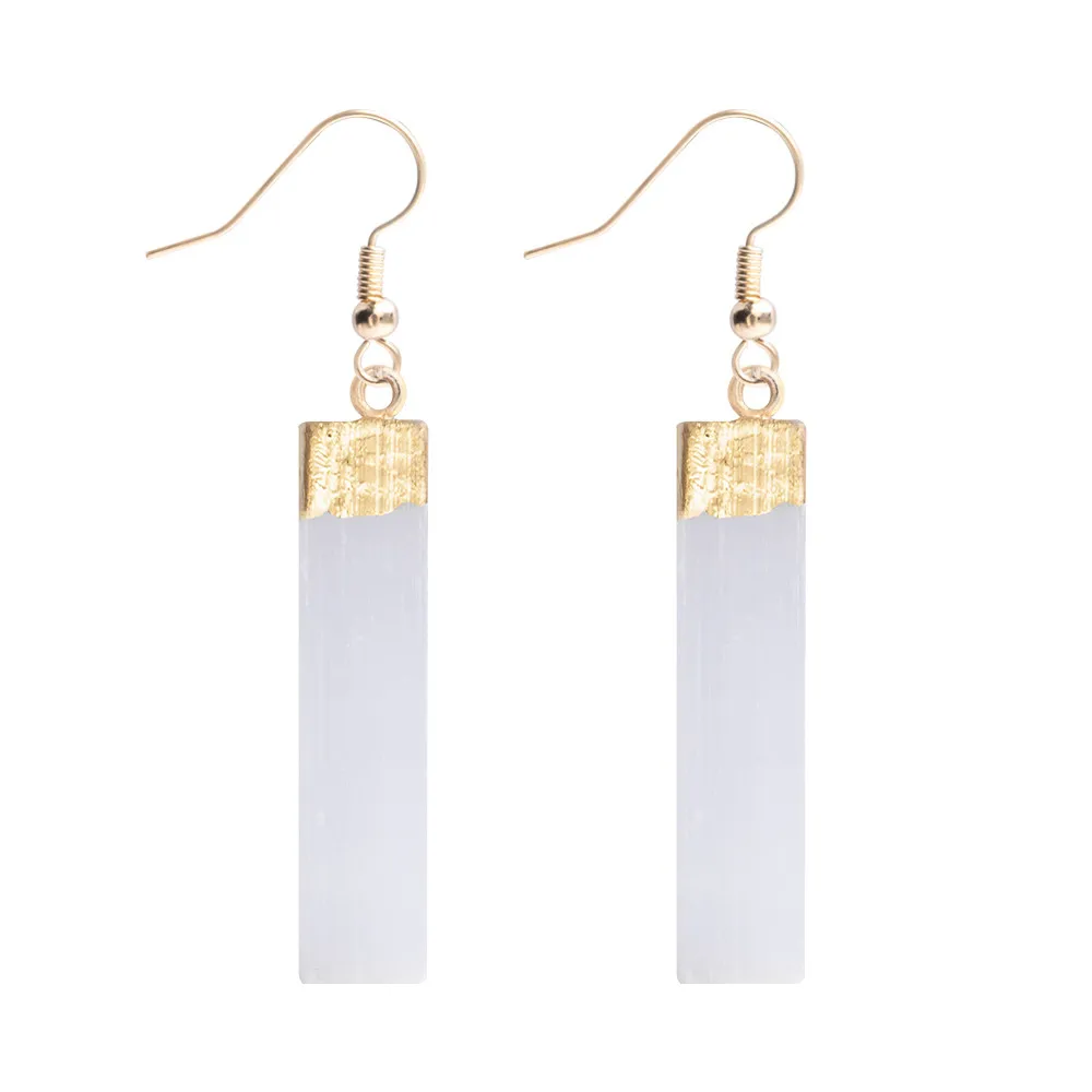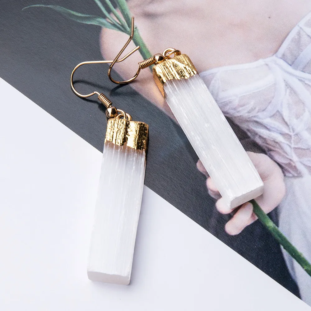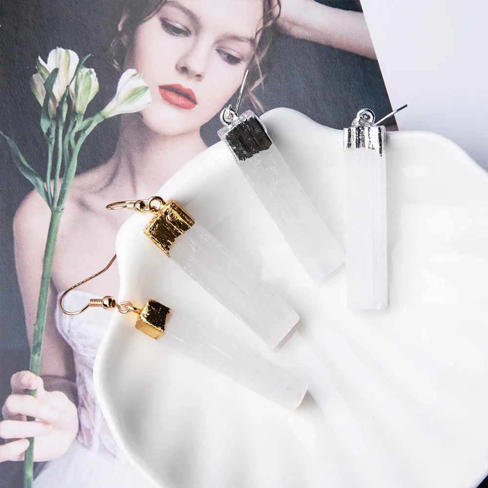 Серьги-подвески с натуральным селенитным камнем для женщин, Простые Модные ювелирные украшения, 1 пара