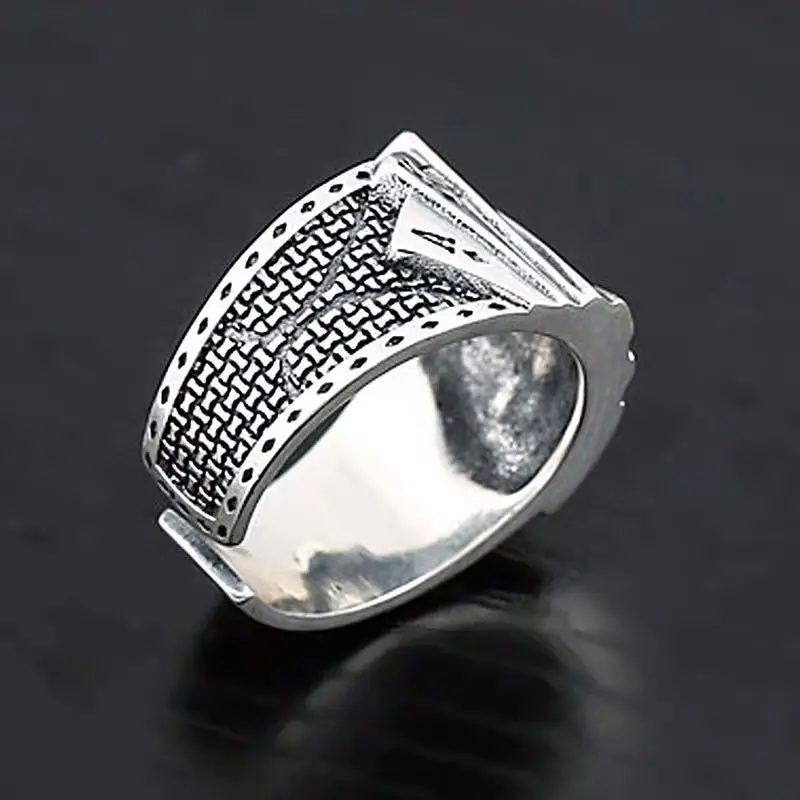 Мужское кольцо в ретро стиле из серебра S925 пробы с квадратным утопом Стильное кольцо для покера индивидуальное кольцо регулируемое кольцо на указательный палец