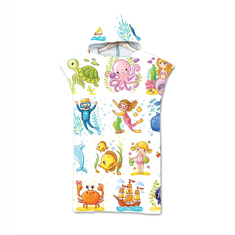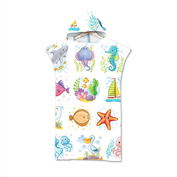Детское полотенце из микрофибры для серфинга, пончо для плавания, пляжа, купальный костюм для дайвинга, сменный халат, женский халат, пляжная одежда