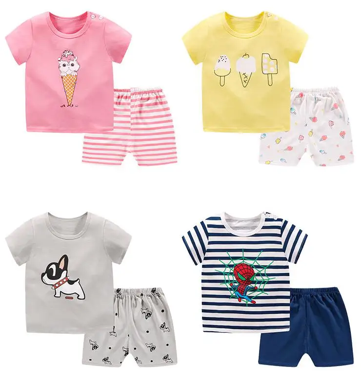 Комплект одежды из 2 предметов, летняя футболка и шорты с волнообразным принтом для новорожденных мальчиков и девочек, повседневная одежда, детский спортивный комплект