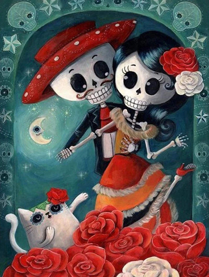 Полноразмерная Алмазная 5D картина сделай сам, мультяшный череп, свадебная Алмазная вышивка, вышивка крестом стразы, мозаика, украшение для дома