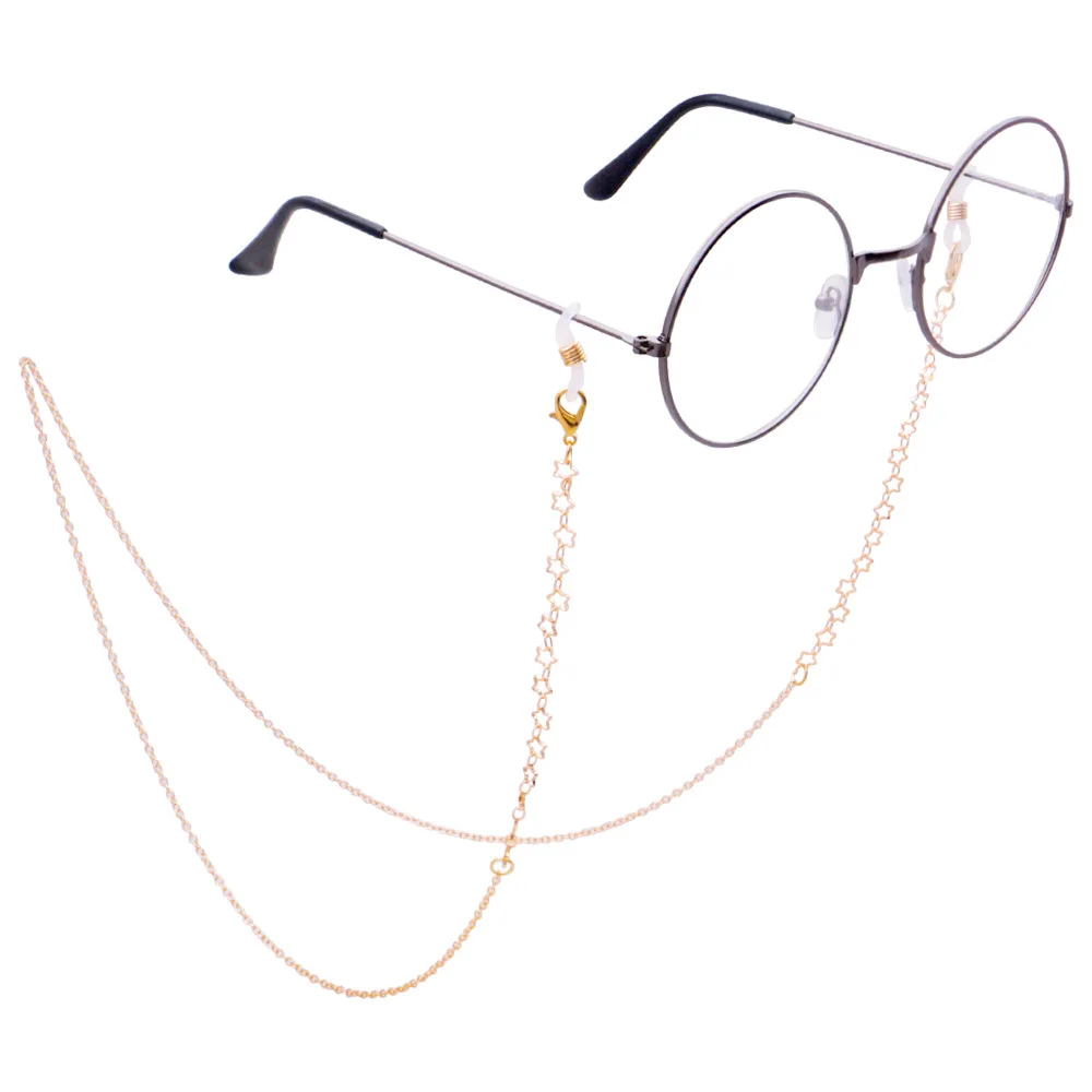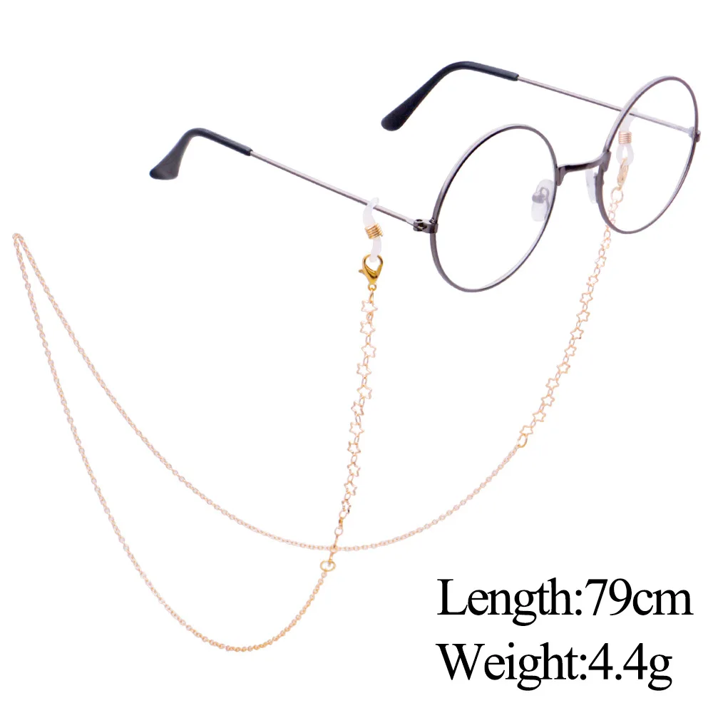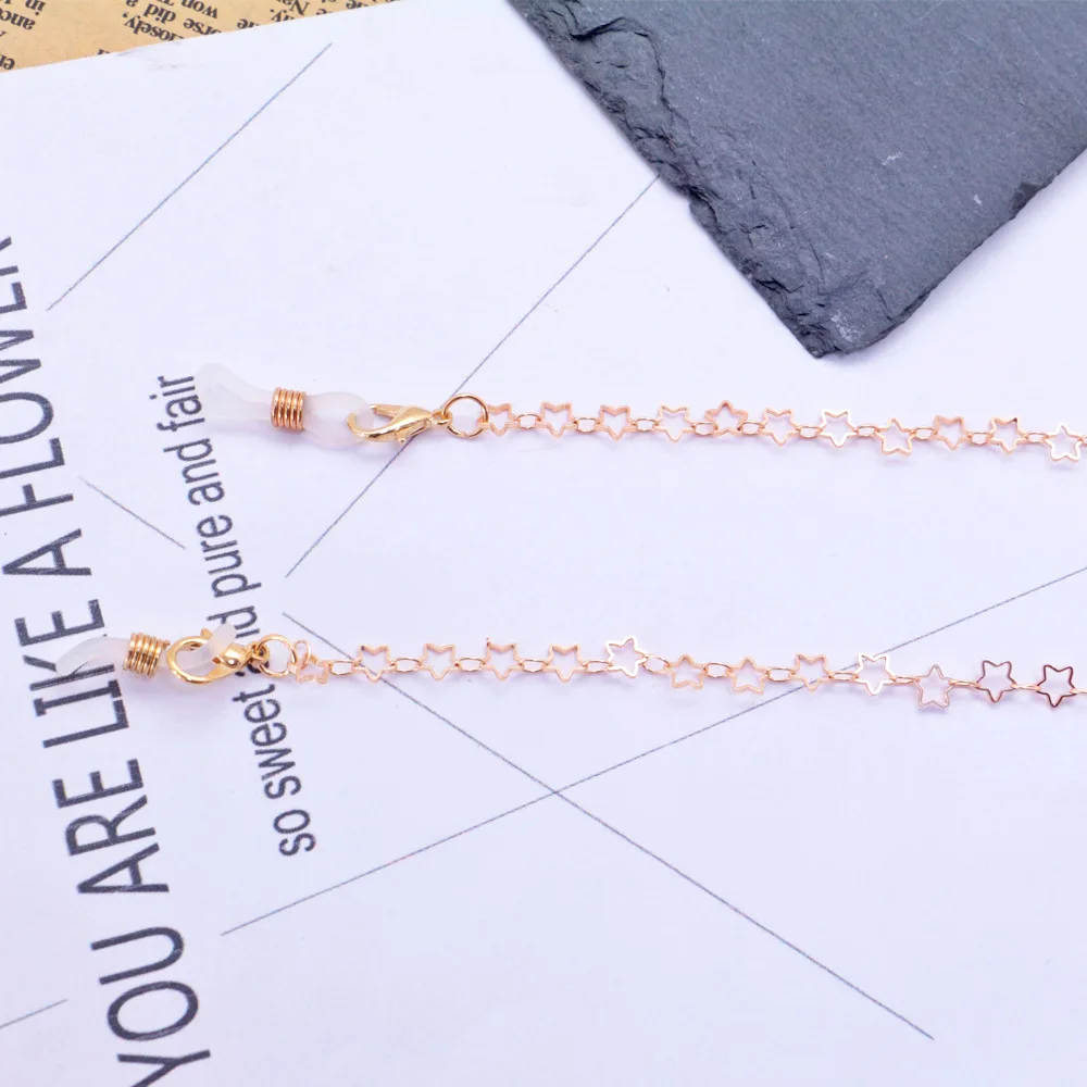Модные полые цепочки для очков со звездами для женщин золотистого и серебряного цвета, маска для лица, держатель с цепочкой, ремешок на шею, аксессуары для очков