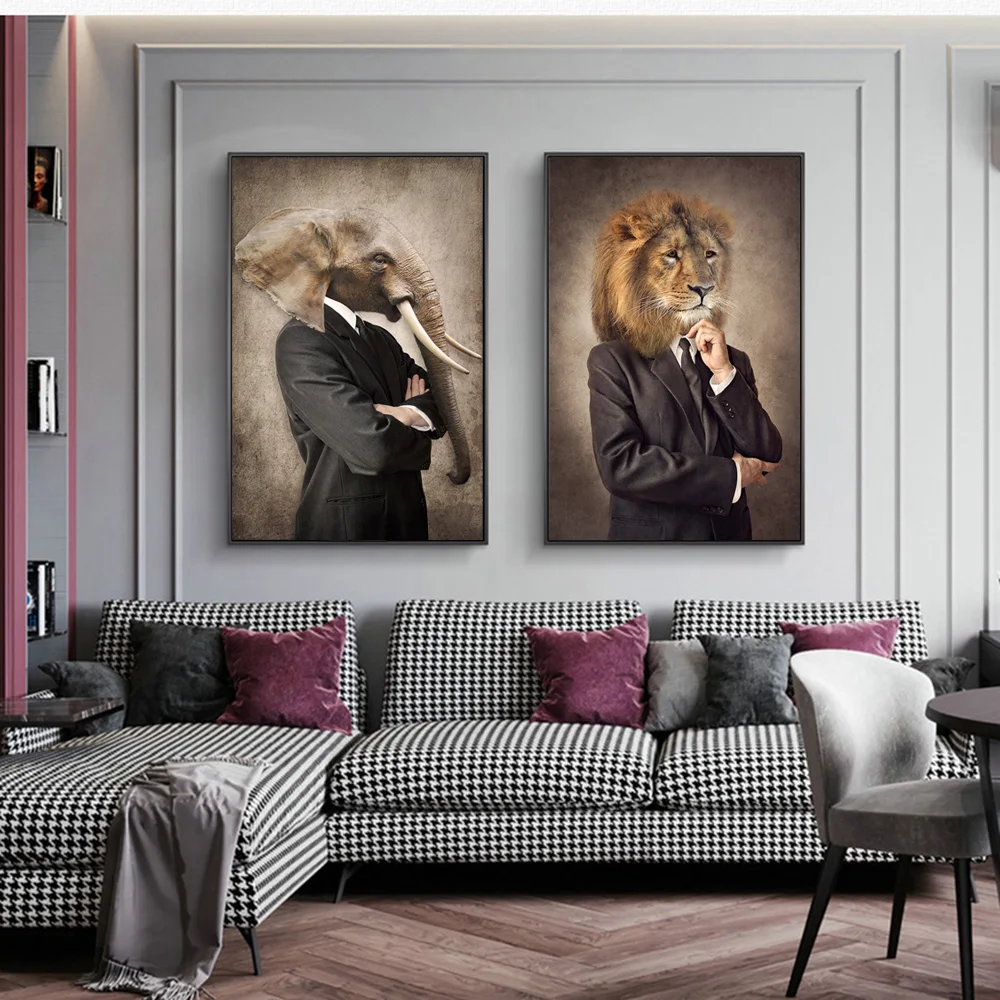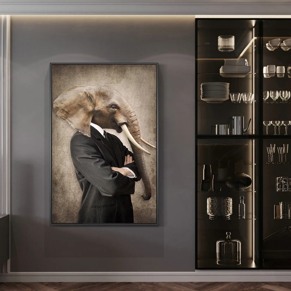 Слон в костюме, скандинавский винтажный холст, художественные плакаты и принты, человек с головой животного, холст, настенные картины, художественные картины