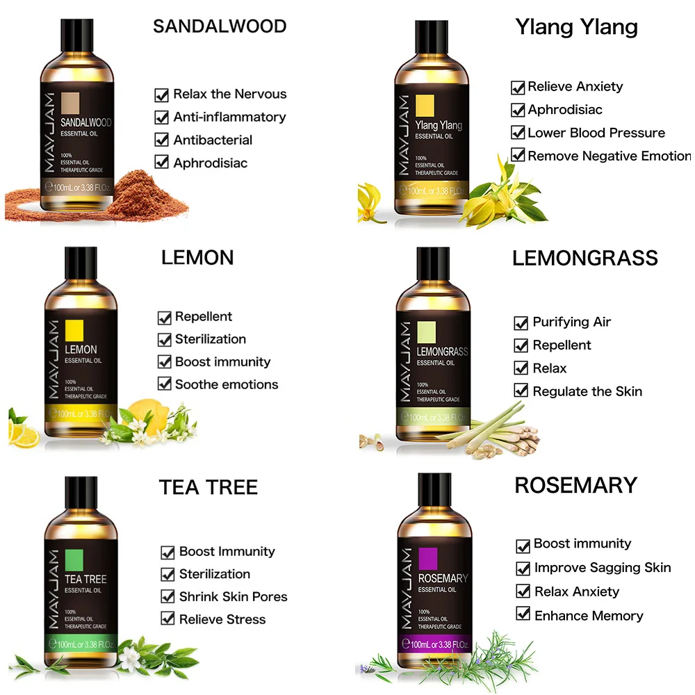 100 мл натуральное эфирное масло эвкалипта диффузор ароматические эфирные Масла мята ванили лаванды сандаловое дерево бергамот Чай дерево аромат