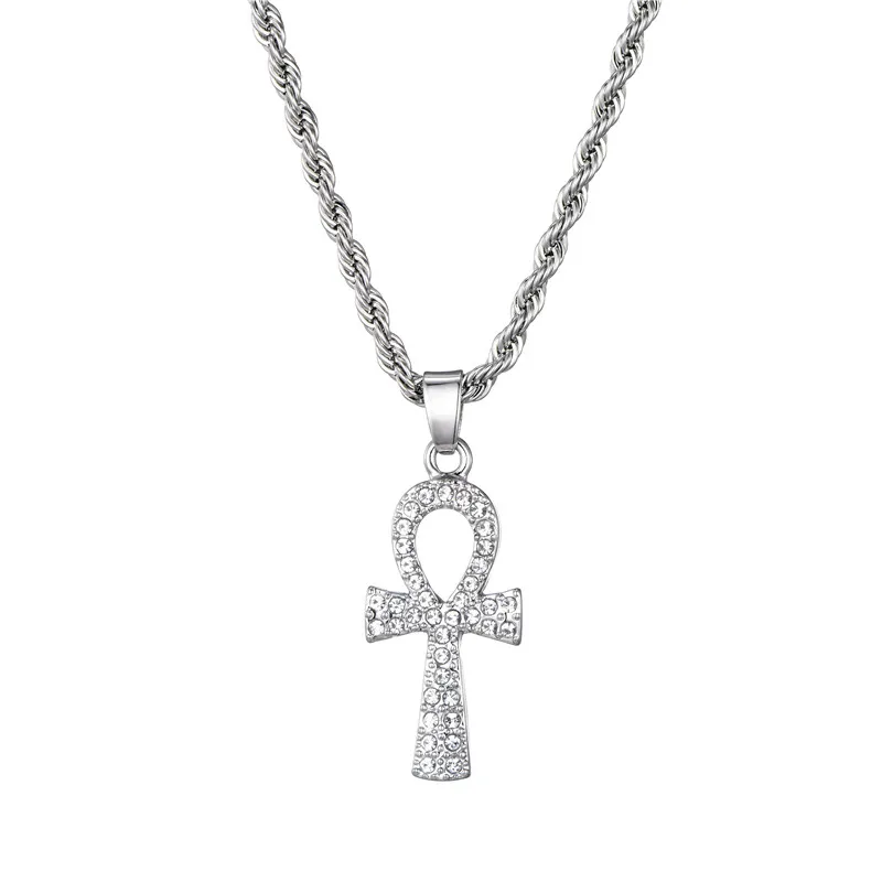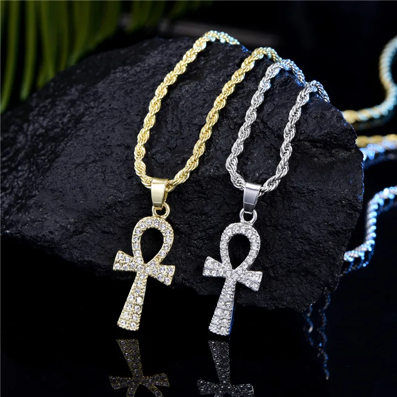 кулоны и подвескипарные кулоныкулон мужскойбижутерияЦепочка с подвеской в виде ключа жизни для мужчин, Ювелирное Украшение в египетском стиле, украшение в стиле хип-хоп, со сверкающими кристаллами, из сплава
