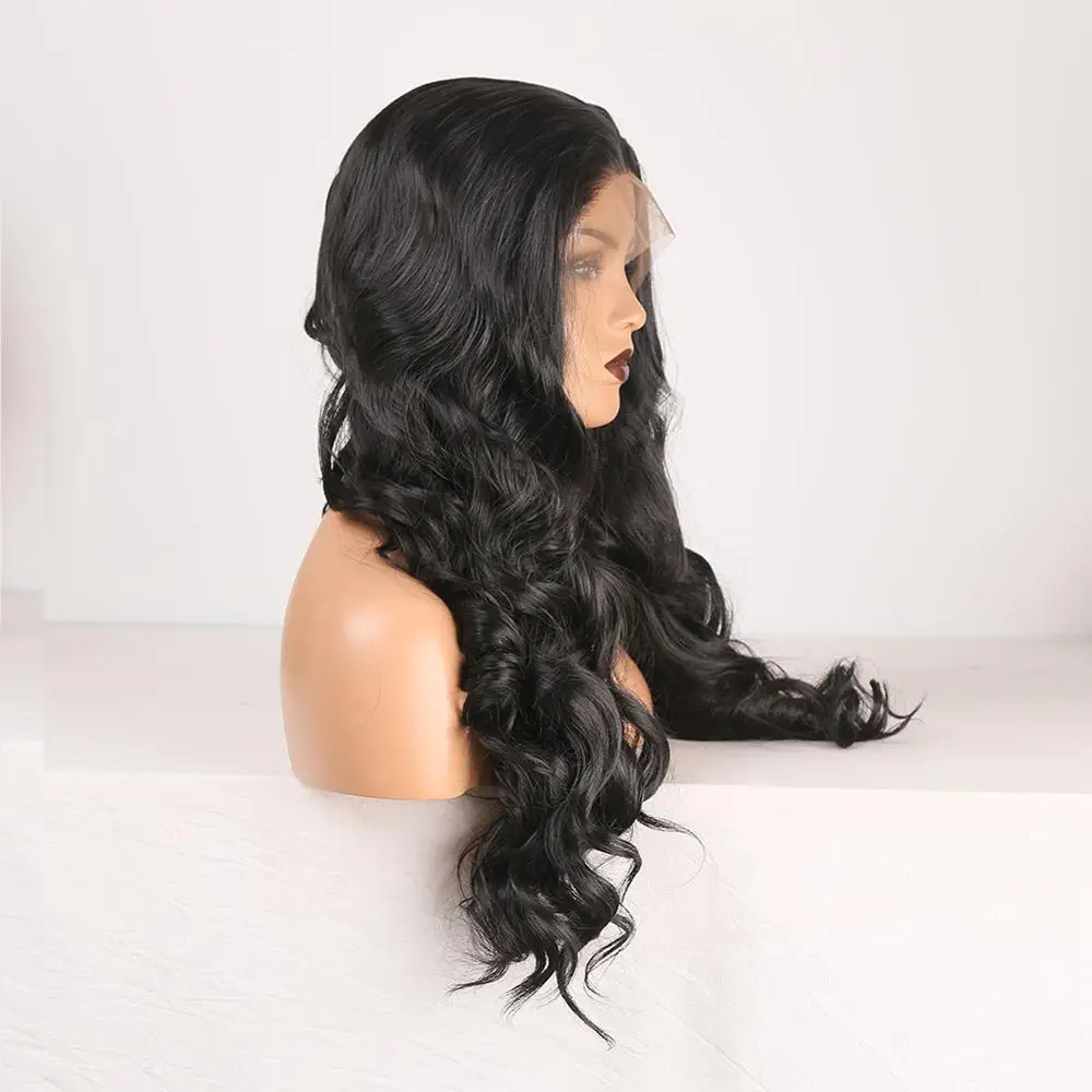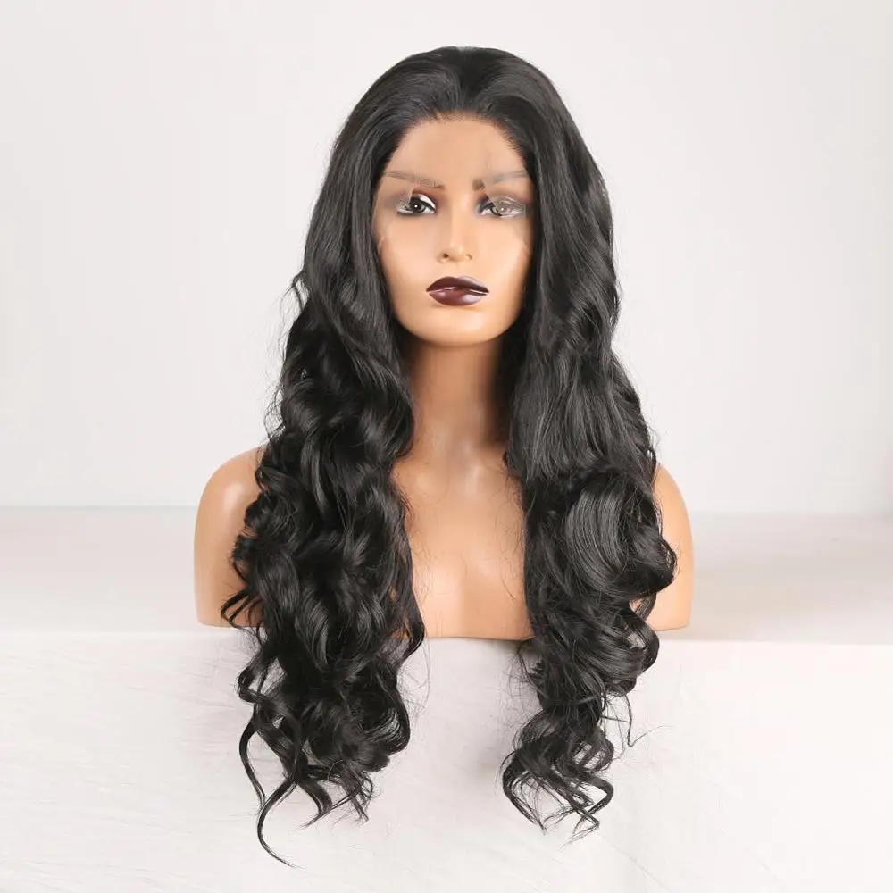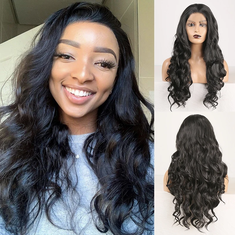 Длинные волнистые волосы RONGDUOYI, синтетические кружевные передние парики, высокотемпературные кружевные парики для чернокожих женщин, бесплатная часть, для ежедневного использования, черные парики