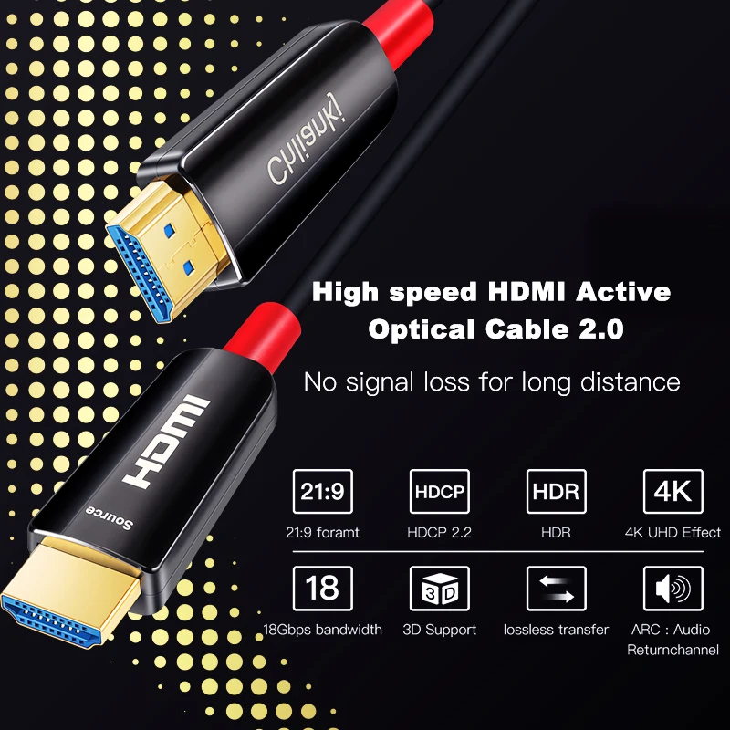 Оптический кабель Lungfish, HDMI-совместимый кабель 2,0 дюйма, 4k, 60 Гц, HDR для HD ТВ-приставки, проектора PS4, длинный кабель 5 м, 10 м, 15 м, 20 м, 30 м, 50 м
