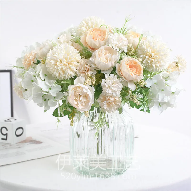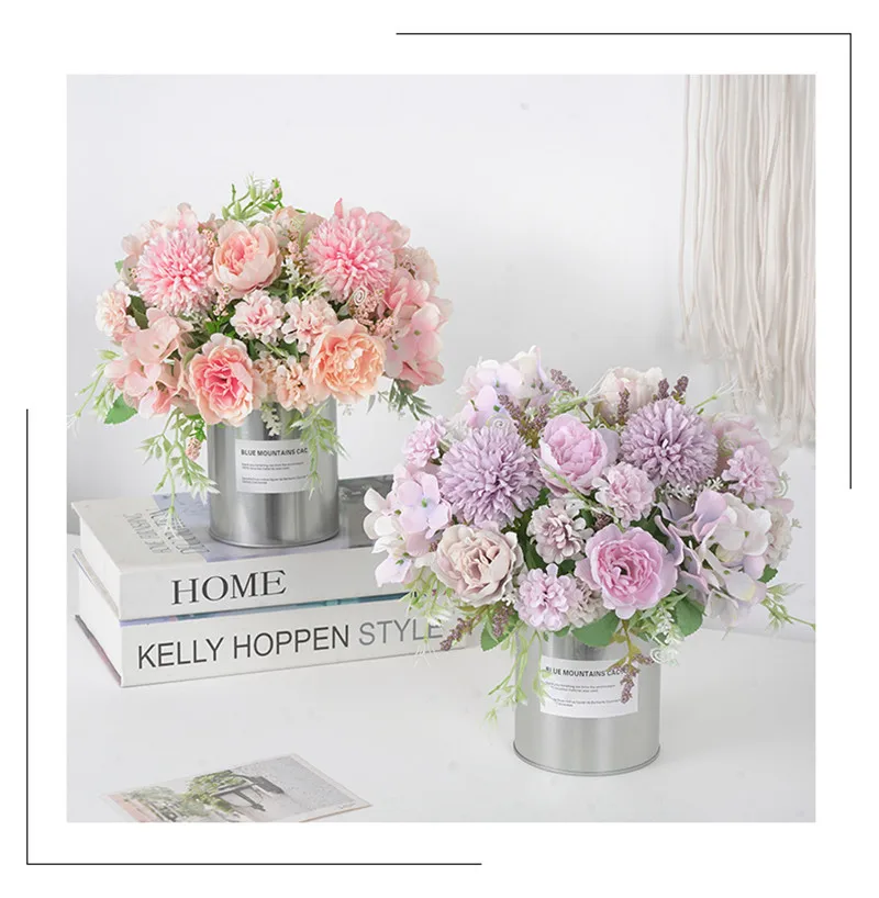 Цветочный букет, 32 см, Роза Искусственный Пион из шелка, 9 головок и 4 бутона, дешевые искусственные цветы, для украшения дома, свадьбы, интерьера