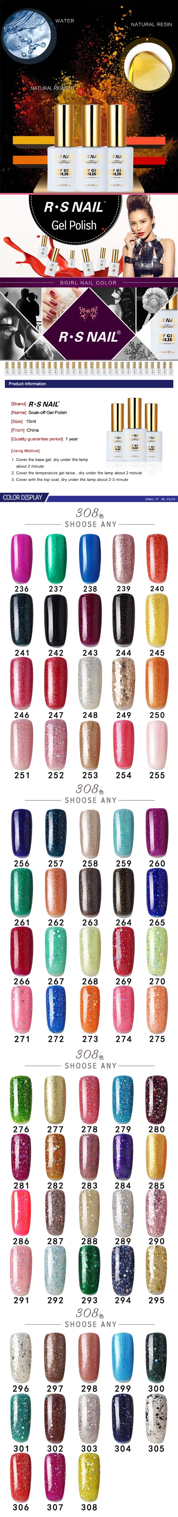 RS Nail 15 мл led uv Цветной Гель-лак для ногтей телесный цвет Модный Цветной Гель-лак для ногтей Маникюрный полуперманентный лак