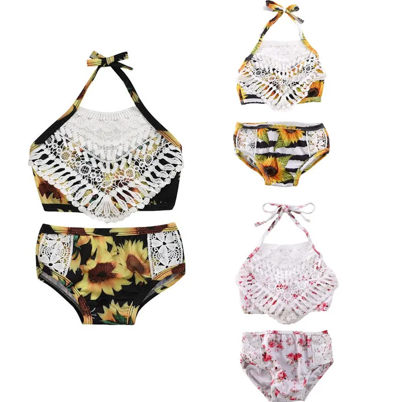 Комплект из 2 предметов для маленьких девочек, кружевной купальный костюм с цветочным узором, вязаный крючком, купальный костюм, комплект бикини, детский летний купальник для девочек, бикини, танкини, монокини!