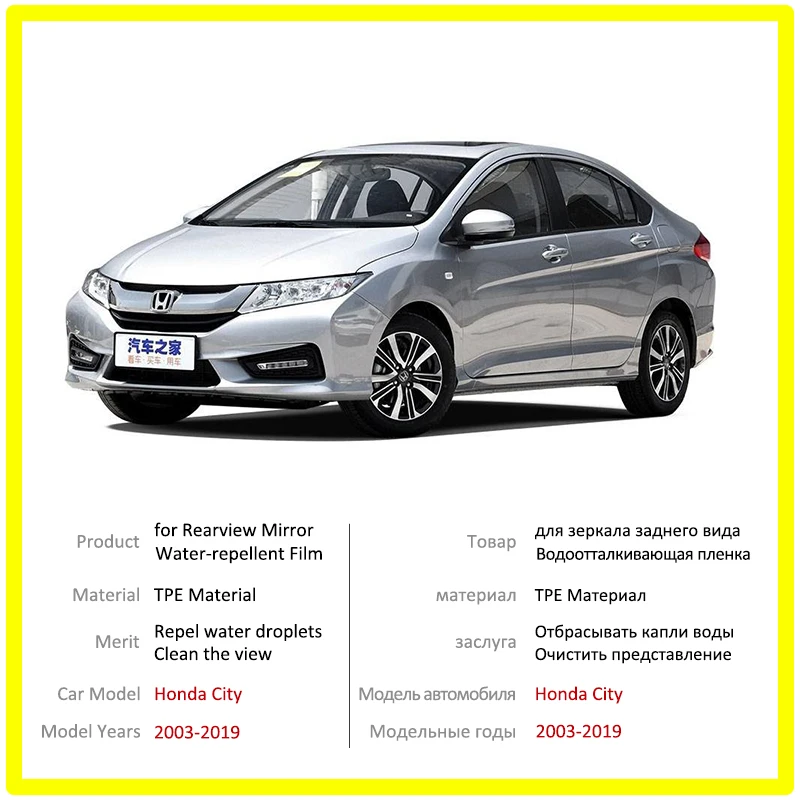 Для Honda City 2003-2019 (GD8 GD9 GM2 GM3 GM6) зеркало заднего вида HD пленка анти-туман непромокаемая Автомобильная Зеркальная Наклейка Автомобильные аксессуары