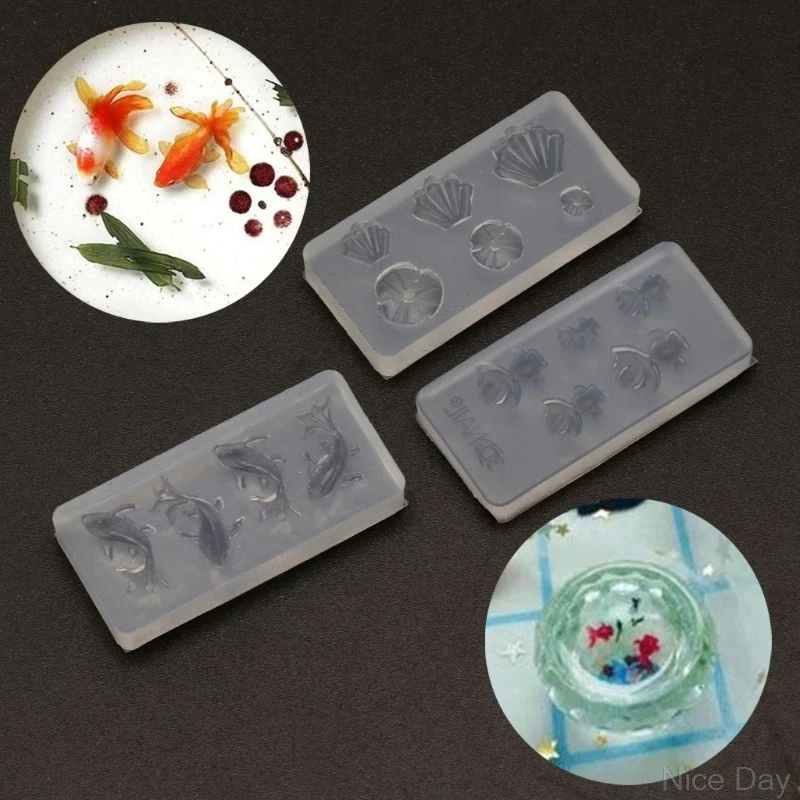 3 шт. Мини Размер Золотая рыбка лист лотоса earrrrings вода Даг DIY Смола ювелирный набор формы E15D