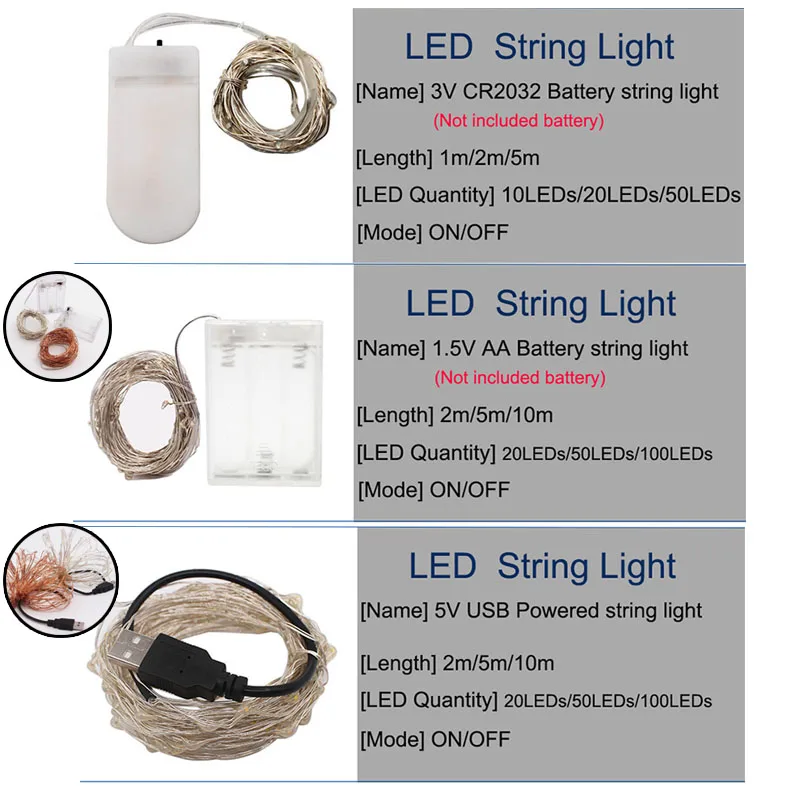 Новинка, светодиодная гирлянда 2 м, 5 м, 10 м, медная, серебристая проволока, водонепроницаемая, праздничное освещение для сказочной рождественской вечеринки, свадьбы, украшения