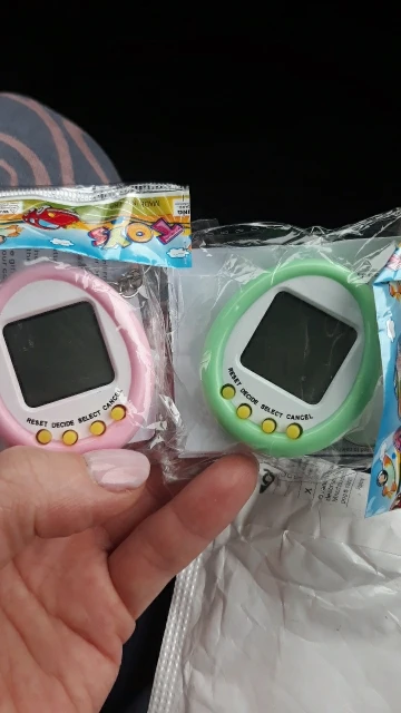 Продавец супер, положил цвет, который попросила. Хотя доставка затянулась и я открыла спор, но продавец быстро ответил и в итоге все пришло. Всем советую, кто хочет вспомнить детство. Сначала расстроилась, получив посылку, Думая что впавшая кнопка это брак. Но нет, это кнопка перезагрузки и её раньше все специально вырезали, чтобы случайно не нажать. Просто здесь она первая, от чего так и не привычно. Тамагочи очень упрощенной версии, но для ностальгии пойдёт. И снимайте плёнку на экране, это сложно, но возможно и она там есть!