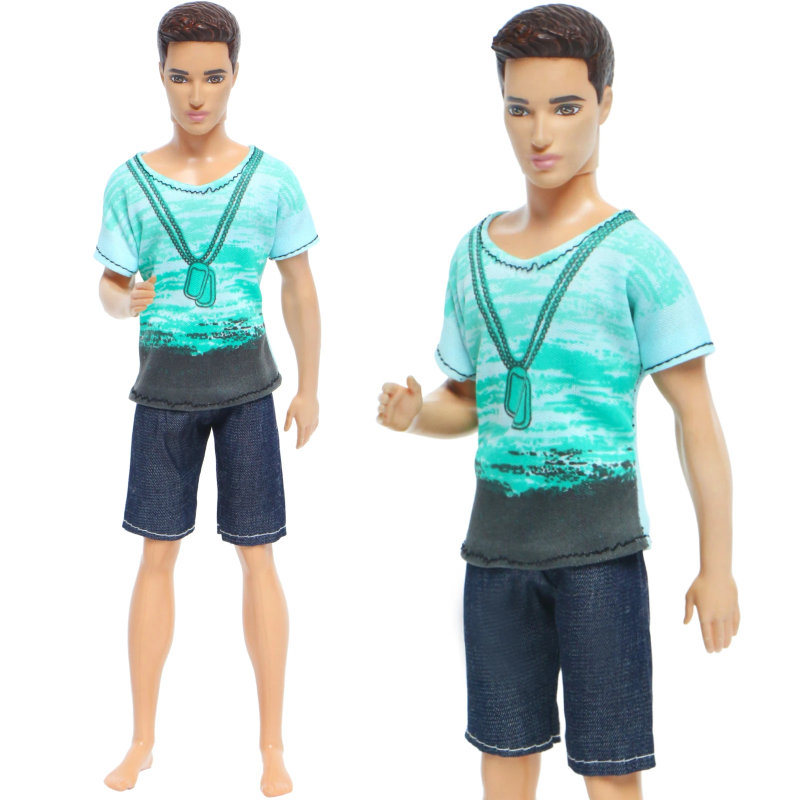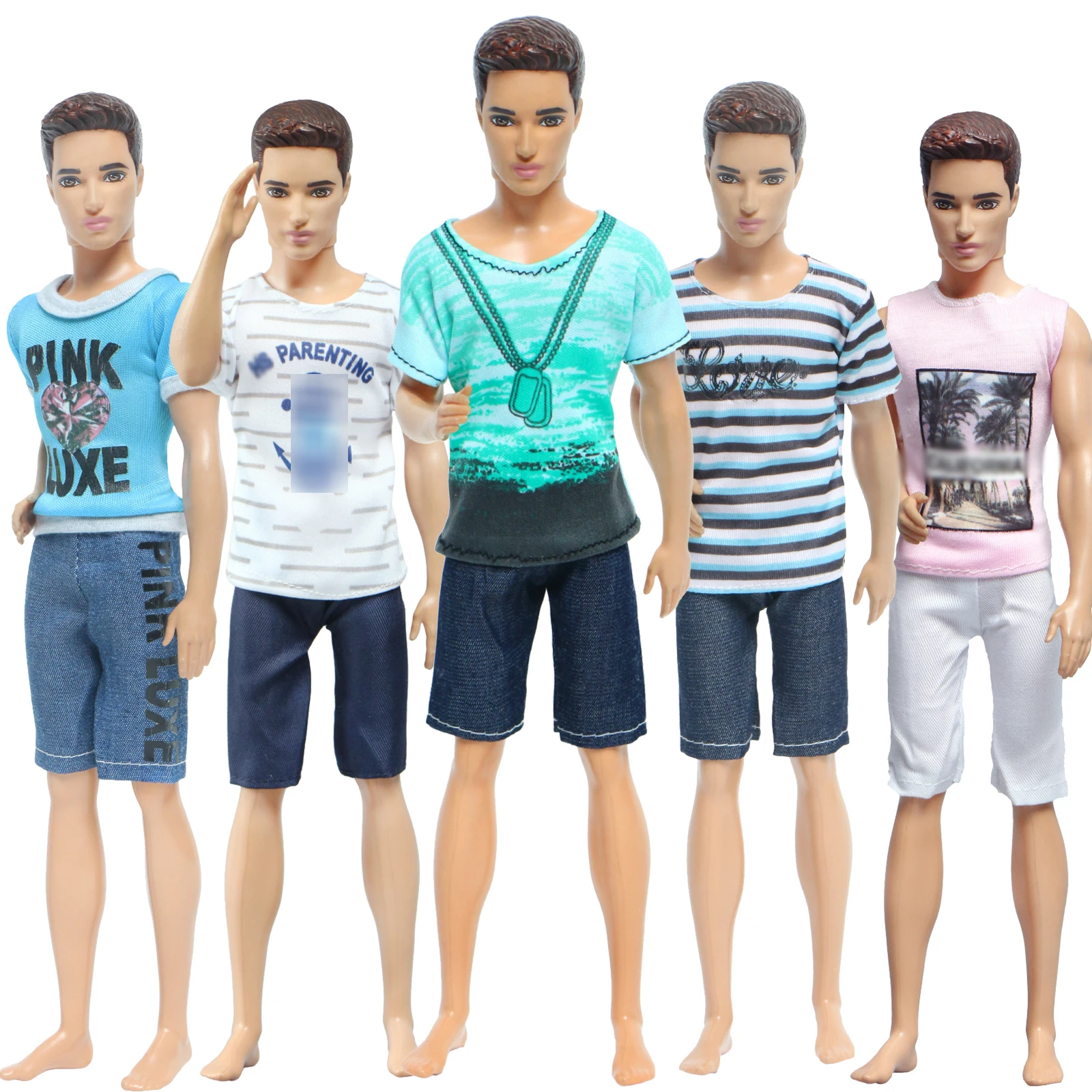 5 компл.упак. Мужская кукольная одежда ручной работы, футболка в полоску, жилет, клетчатые шорты, брюки, летняя одежда для кукол Ken, аксессуары