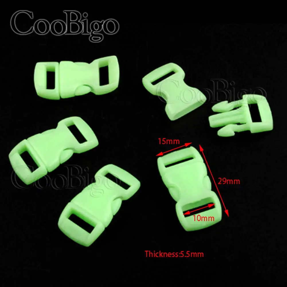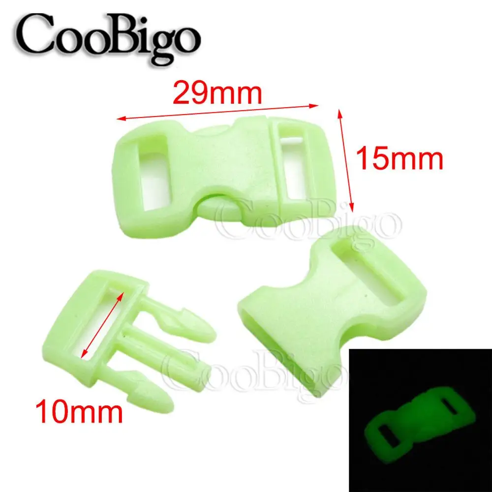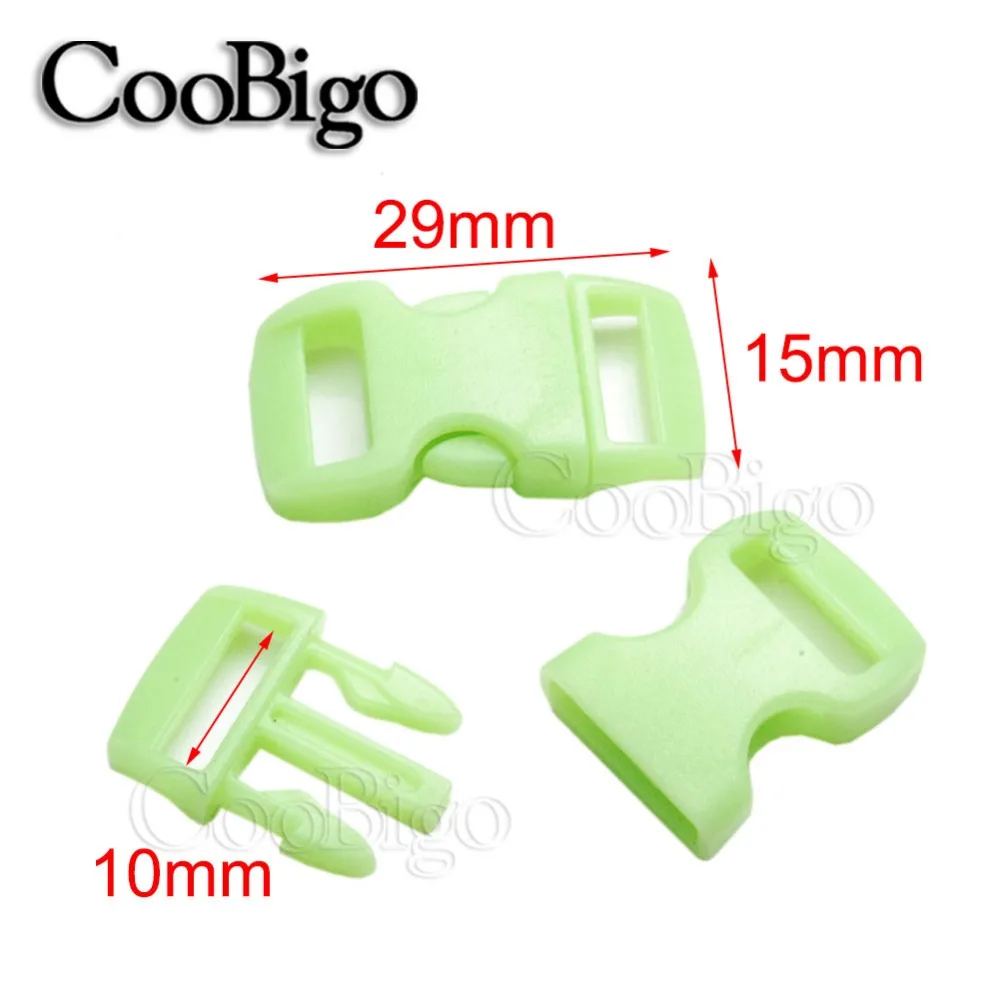 Флуоресцентные пряжки 10 мм, светящиеся боковые пряжки, зажим, застежка для браслета Паракорда, детали ремешка для рюкзака, светящиеся в темноте 50 шт.