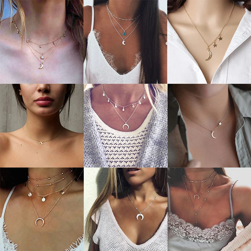 Трехслойное Длинное колье-чокер с Луной, аксессуары для женщин, юве...