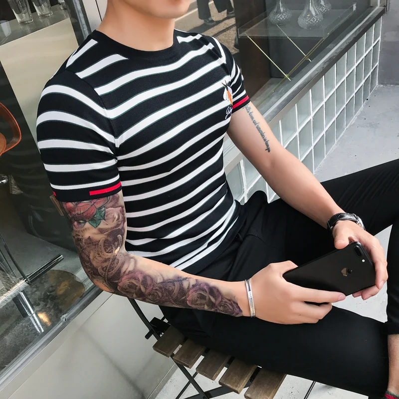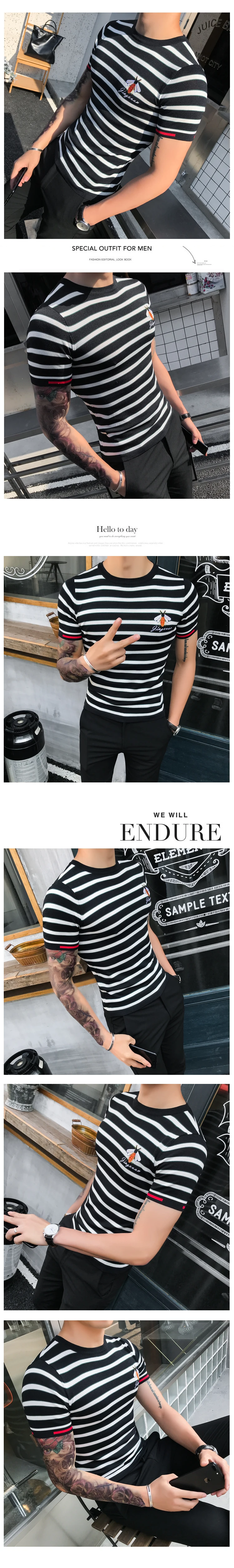 Футболка мужская приталенная с круглым вырезом, трикотажная рубашка в полоску, в уличном стиле, одежда для общественных клубов, на лето