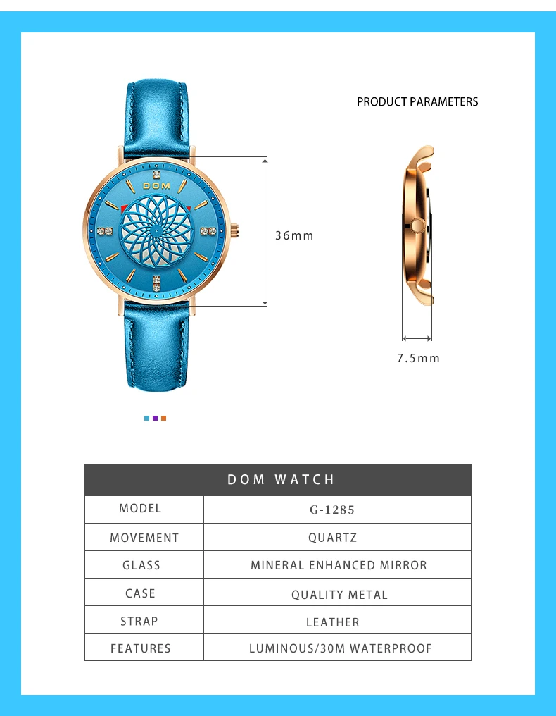 Рэнд: DOM-Дисплей: аналоговые кварцевые часы-Стиль: Модный, Повседневный, роскошный, простой-Особенности: водостойкий, Lumouins Основная особенность:-100% новый с биркой и высоким качеством;-3 АТМ/30 М Водонепроницаемость (поддержка холодного душа и плавания, не использовать часы под водой, не поддерживать горячую воду);-Качественный чехол из цинкового сплава;-Качественный кожаный ремешок; Спецификация приближения:-Чехол Диаметр: 3,6 см-Чехол Толщина: 0,75 см-Диапазон Ширина: 1,6 см-Общая длина: 18,3 см Посылка включает в себя:-Часы DOM-1 шт.-1 x DOM Box