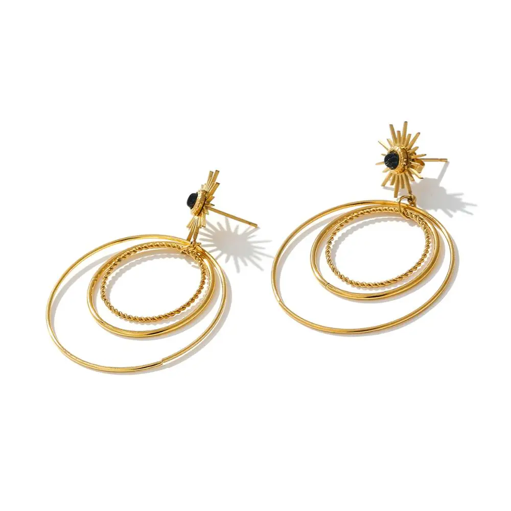 Новинка, круглые Многослойные висячие серьги Yhpup золотого цвета, ювелирные изделия из нержавеющей стали, металлические геометрические массивные серьги для женщин 2021