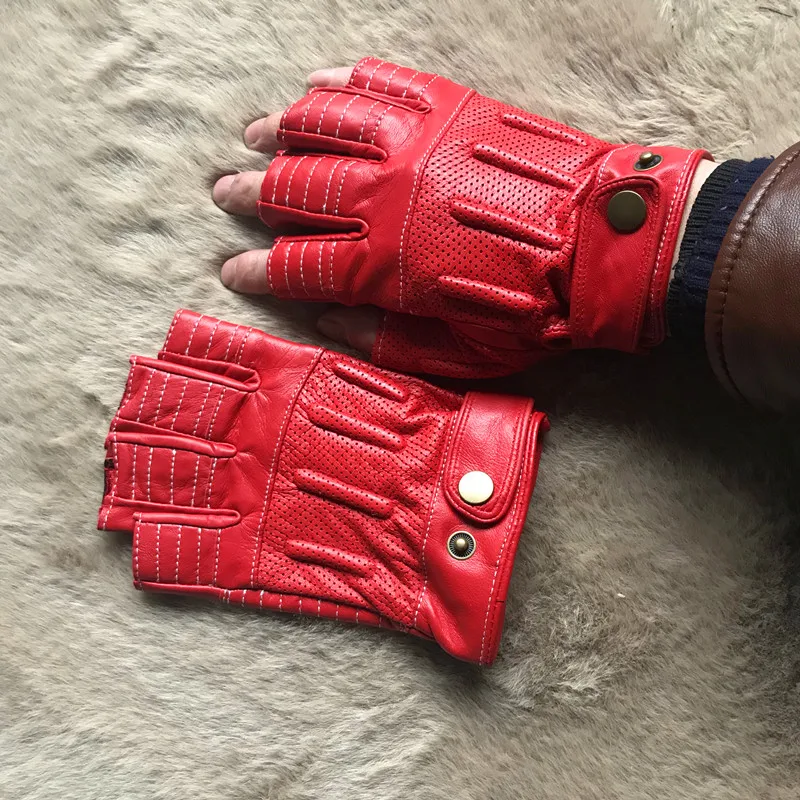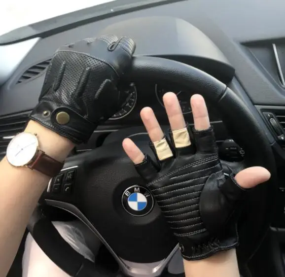 Перчатки мужские с полупальцами, кожаные из козьей кожи, в ретро стиле, Нескользящие, для вождения, летние