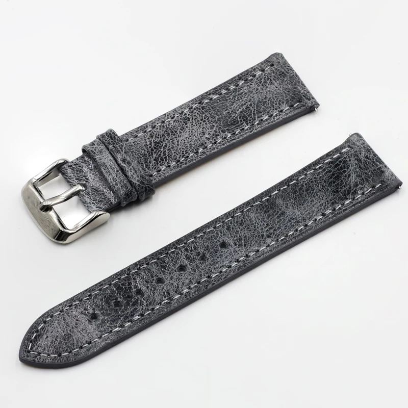 Ремешок для часов мужской кожаный, кожаный браслет в ретро стиле, аксессуары для часов, 18 мм 20 мм 22 мм 24 мм, серый чёрный коричневый синий