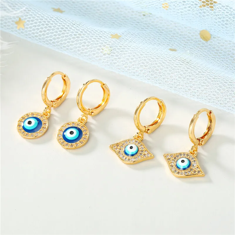 Серьги-кольца Dayoff из индейки Huggie женские, модные круглые ювелирные украшения для небольшой стразы от сглаза в турецком стиле с Луной, Подарочная бижутерия