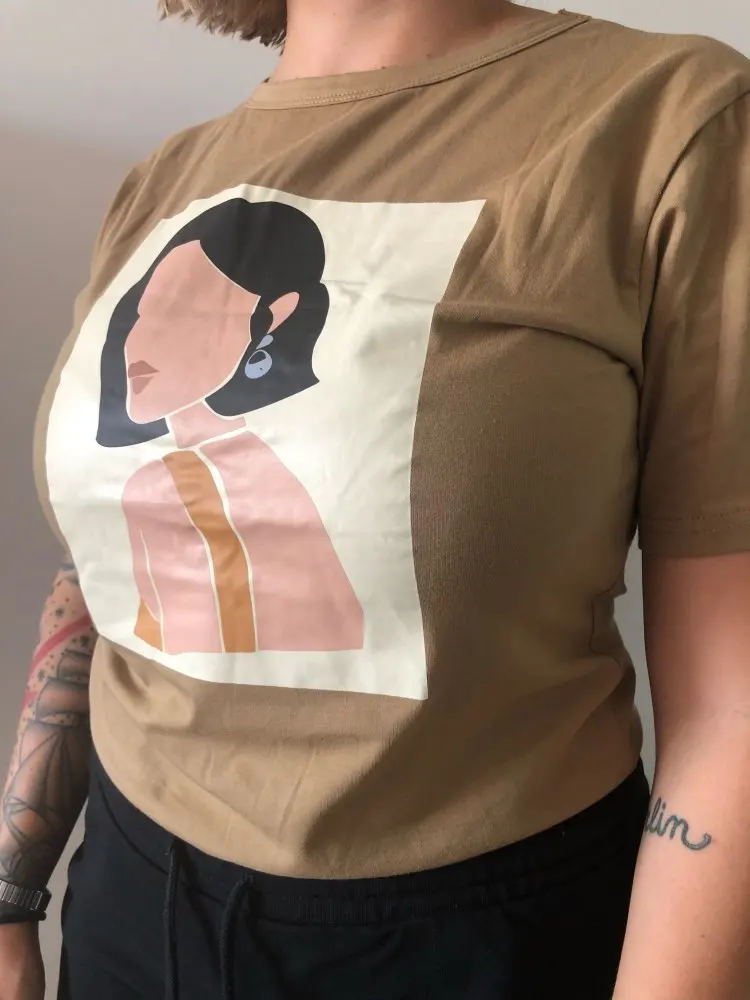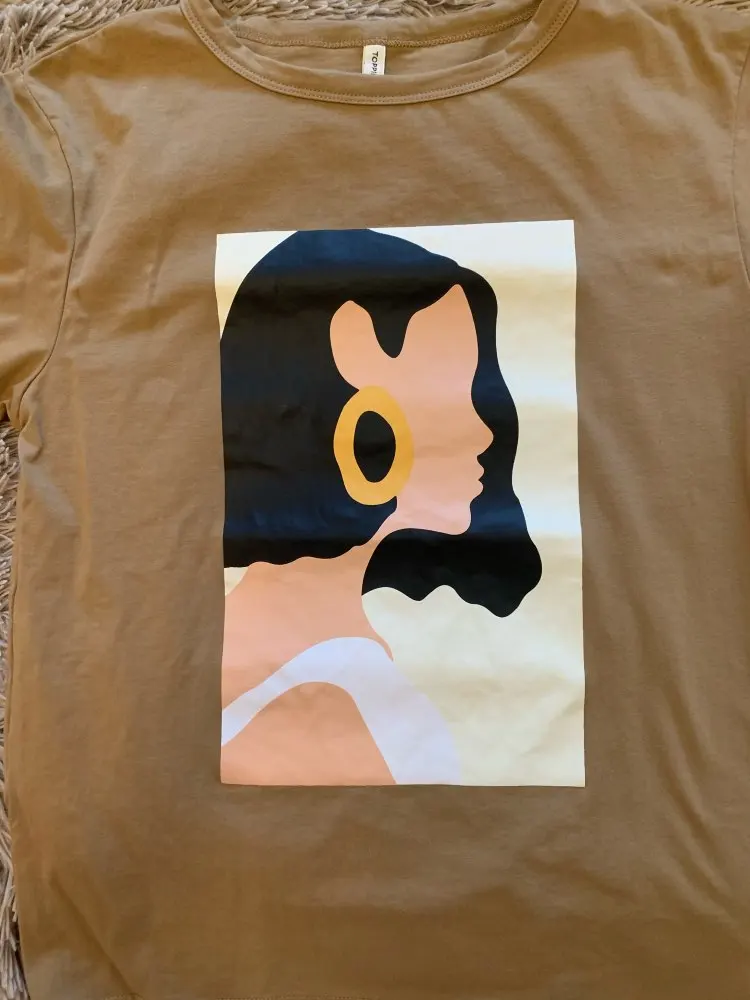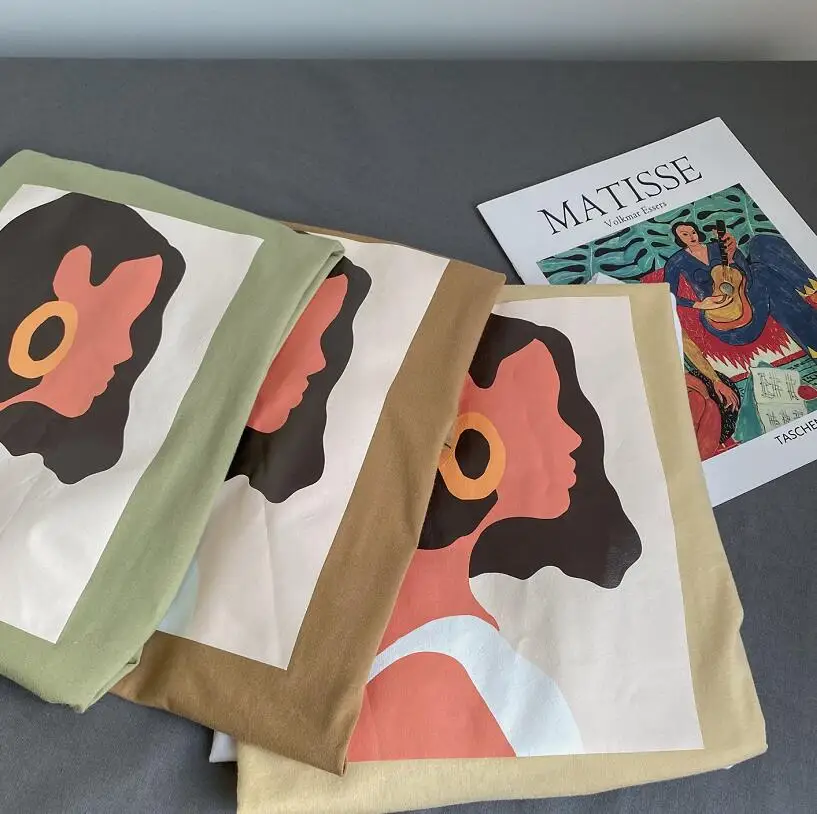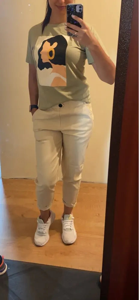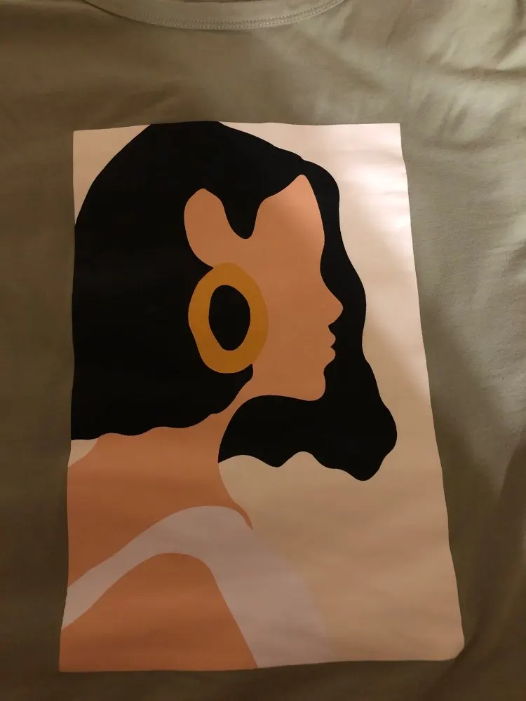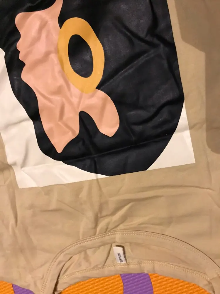 Разочарована в цвете. Не беж, а какая-то желто зелёная история.. В целом качеством довольна, приятный плотный хлопок, рисунок нанесён качественно. У меня уже есть похожие футболки из другого магазина, там футболка толще, но из-за этого более не продуваемая ветром, поэтому тут толщина ткани в самый раз