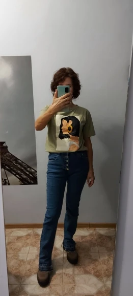Майка прикольная. Но нужно заказывать размер побольше, чтобы смотрелась, как оверсайз.