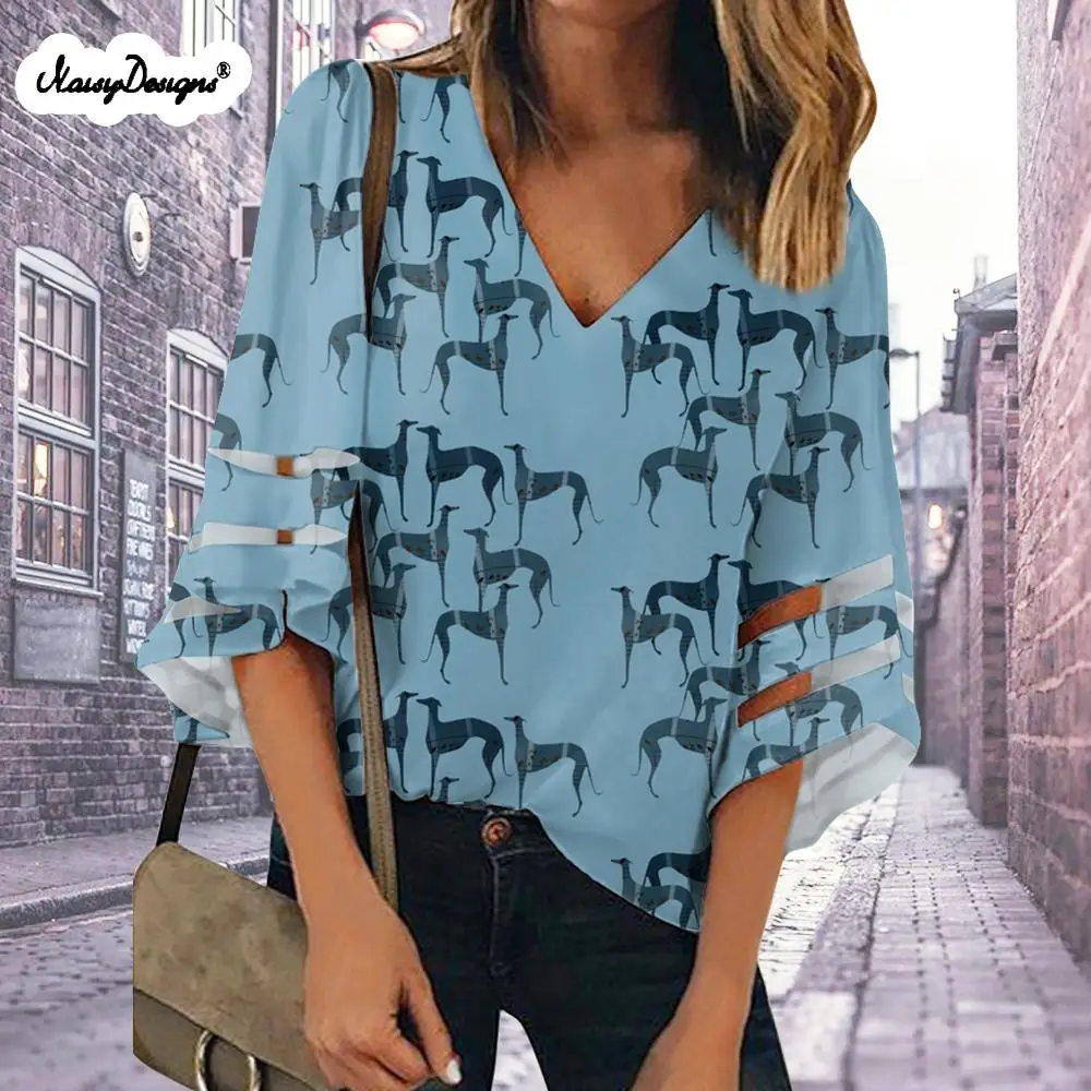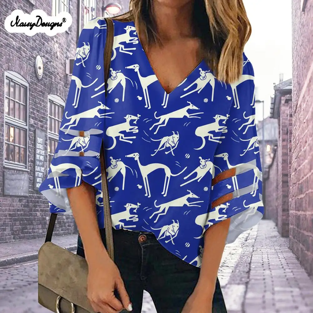 Noisydesignsлетние женские блузки белого цвета с принтом собаки серого цвета, свободная офисная рубашка размера плюс XXL Mujer Blusas на заказ