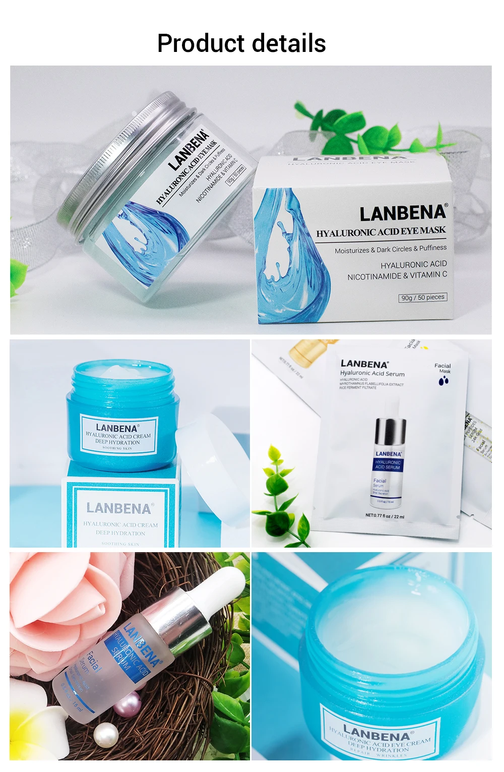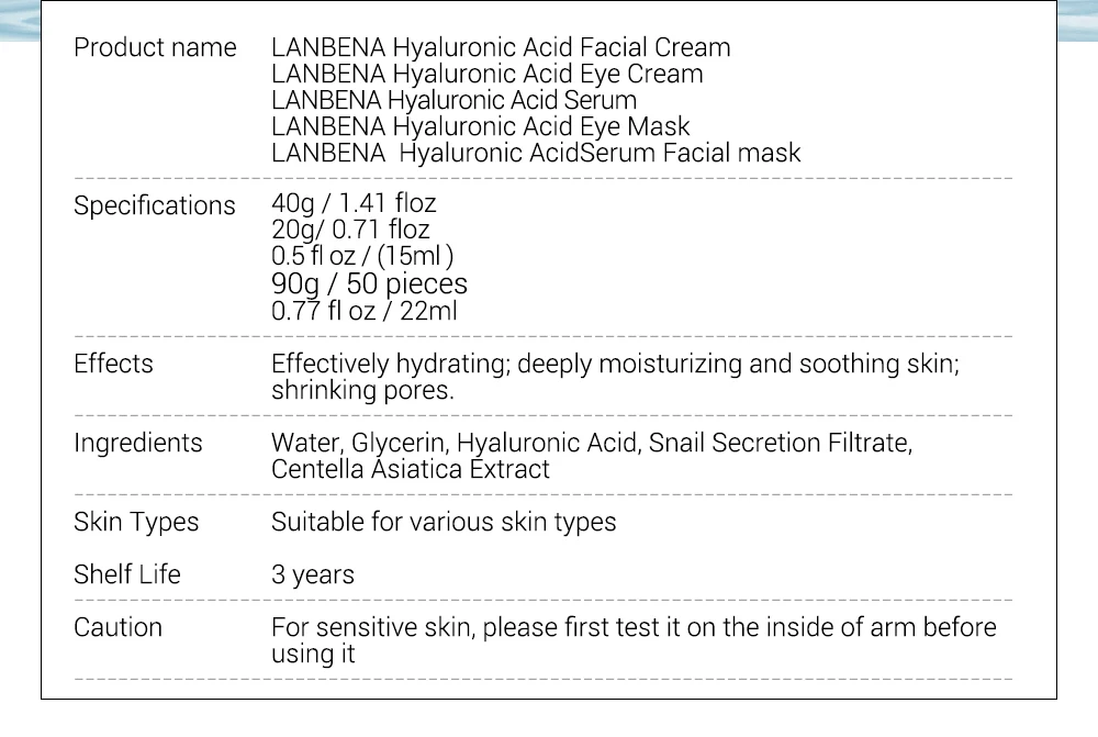 Lanbena Гиалуроновая кислота уход за кожей лица, Смягчающая маска для ухода за кожей лица Сыворотки уход за кожей лица крем для ухода за областью вокруг глаз маски для глаз увлажняющий смягчающий кожу Красота