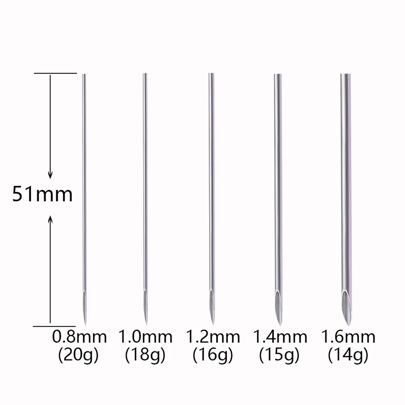 Набор одноразовых стерильных игл для пирсинга пупка, губ 14 г, 15 г, 16 г, 18 г, 20 г, 510 шт.