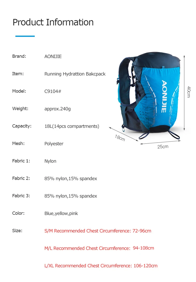 SM Размер AONIJIE C9104 ультра жилет 18 л гидрация рюкзак сумка мягкий пузырь для воды фляга походная тропа бег марафон