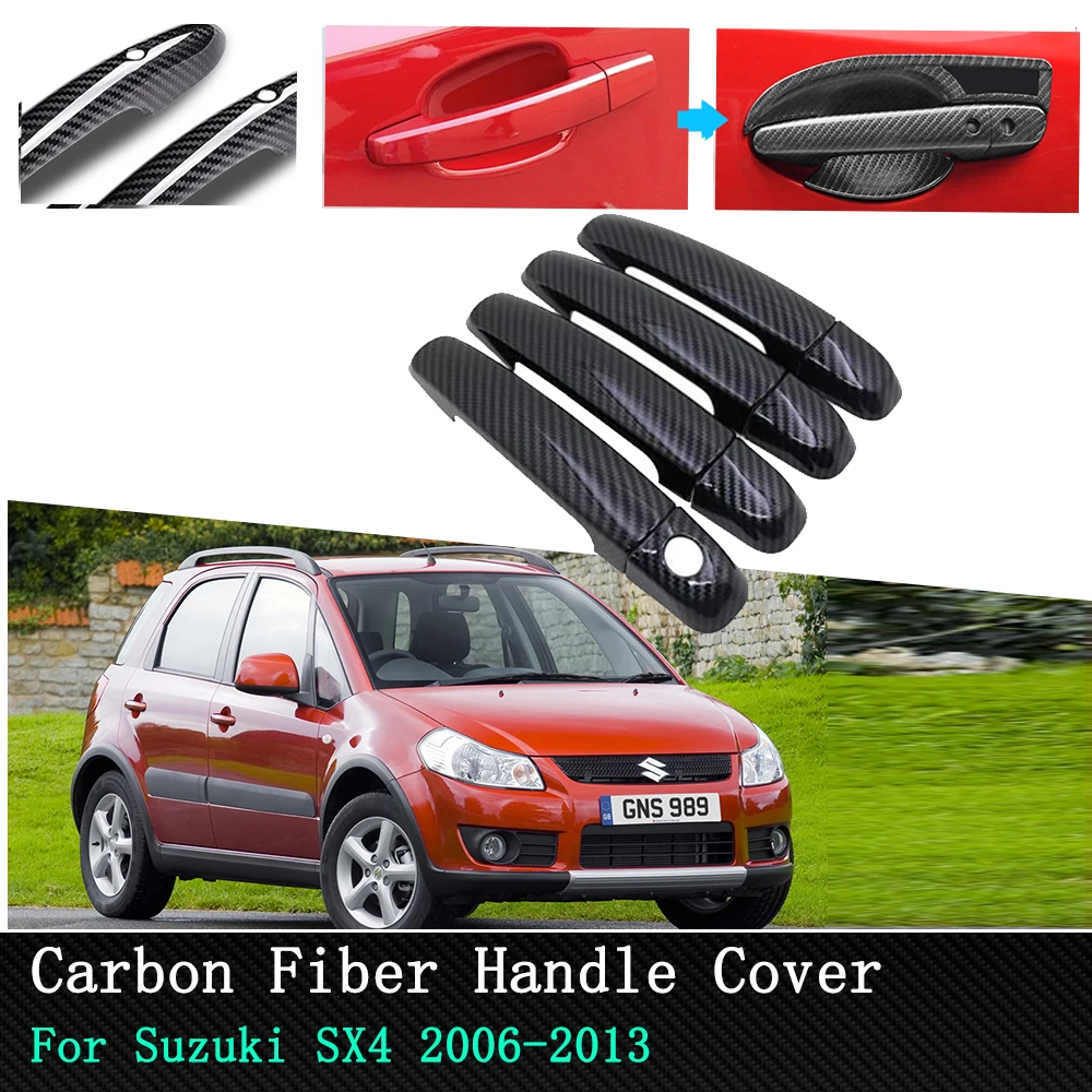 Car Exterior accessories Door Handle Cover Stickers For Suzuki SX4 Fiat Sedici Maruti 2006~2013 Chrome Carbon Fiber