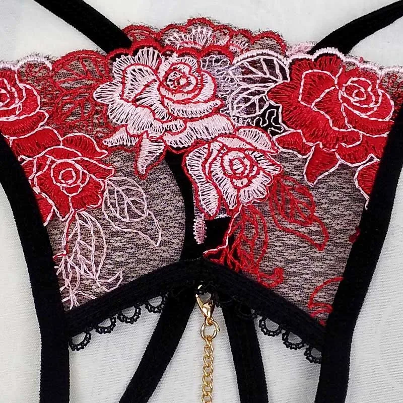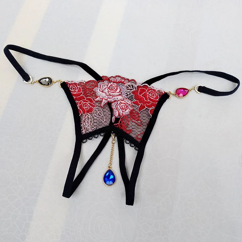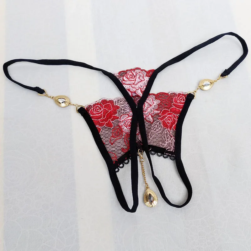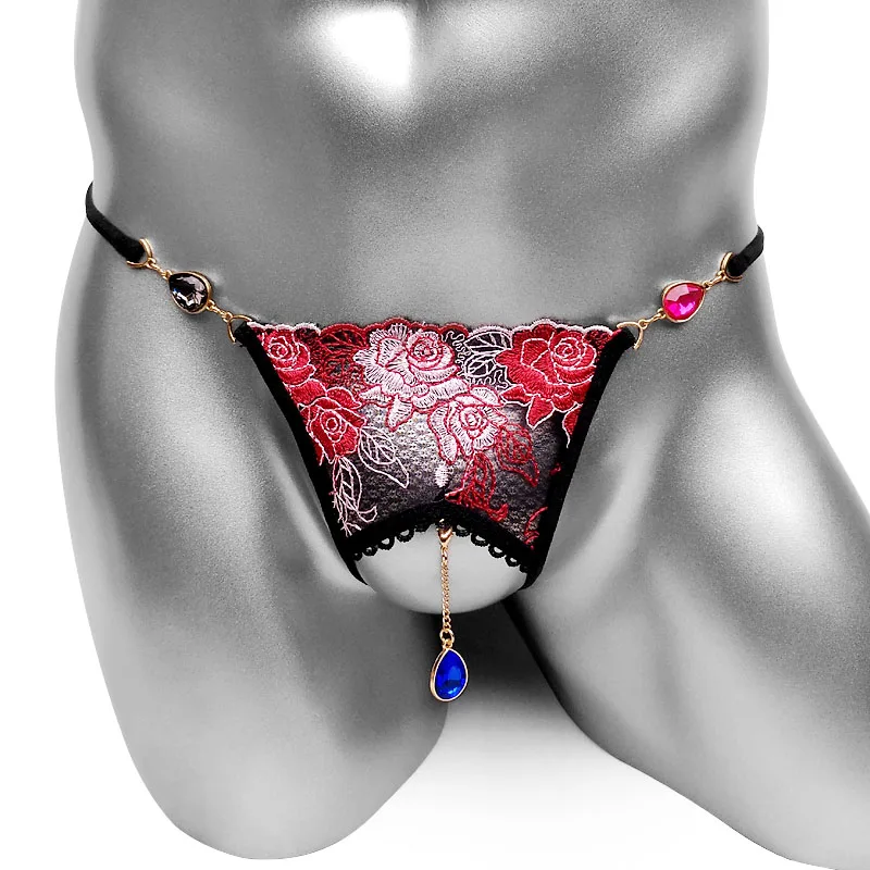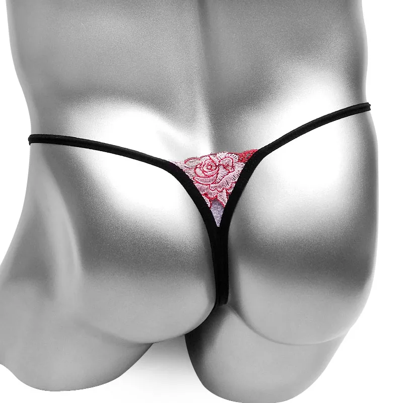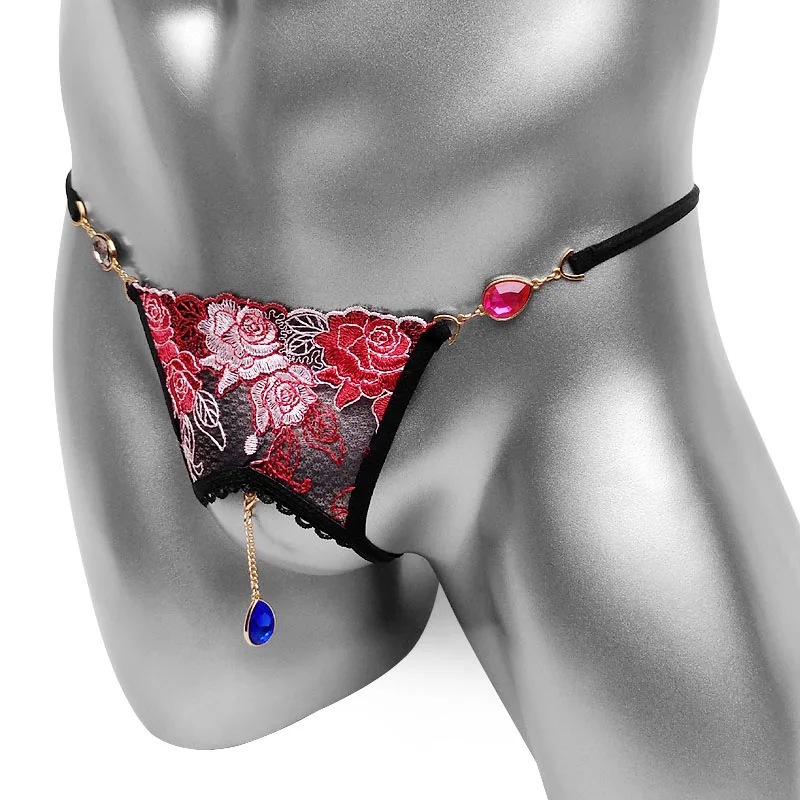 Трусы-стринги с открытой промежностью, мужские бикини с вышивкой, пикантное кружевное нижнее белье с цветочным принтом