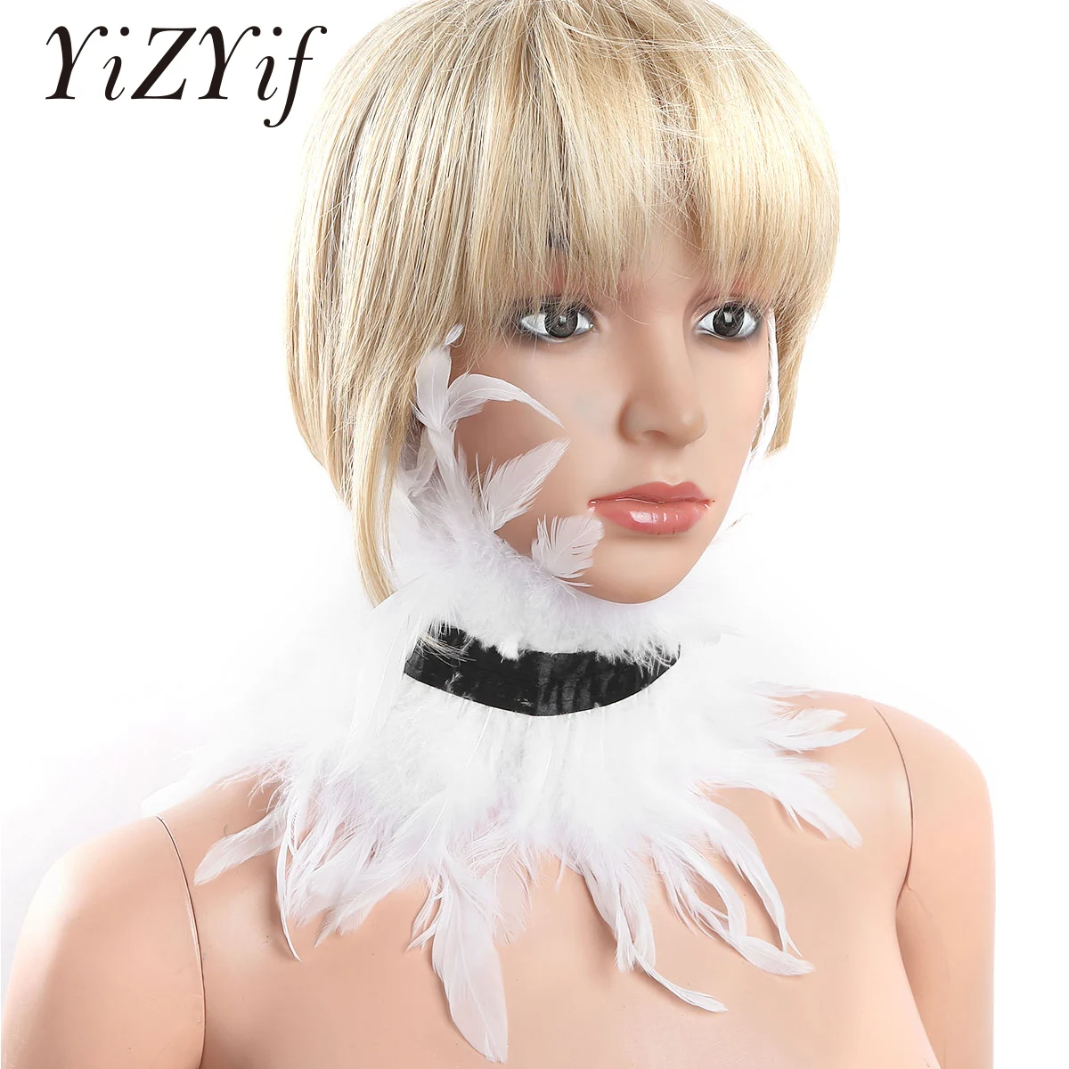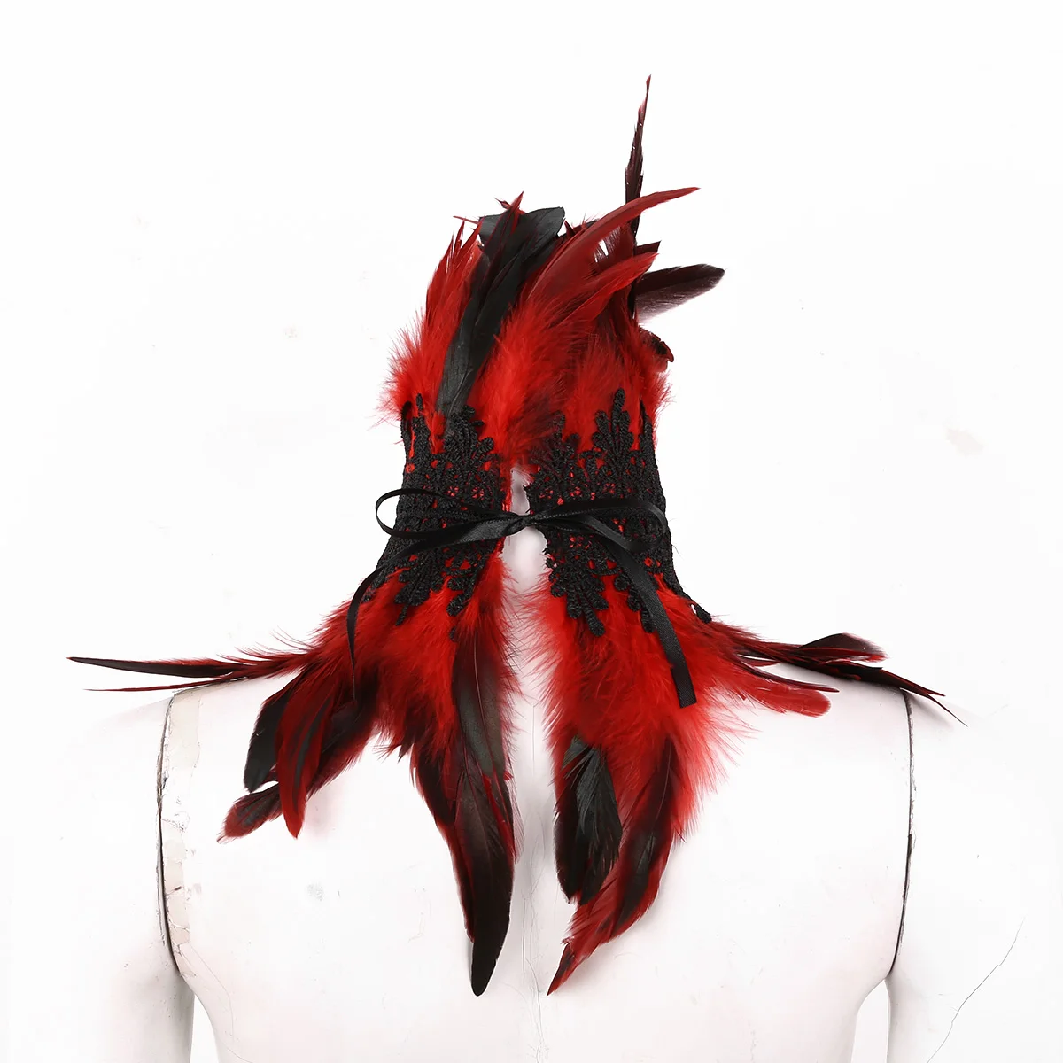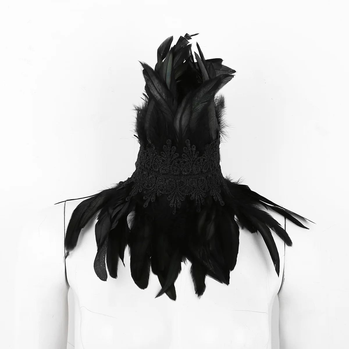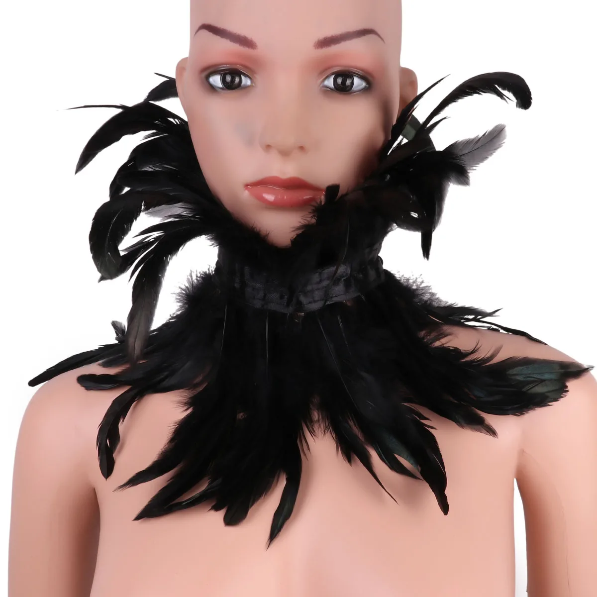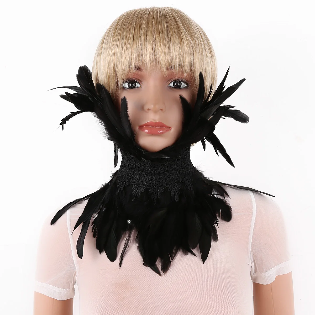 Готический викторианский пуховый воротник шали с натуральными перьями кружевная вышивка чокер шейный воротник панк косплей костюм аксессуары