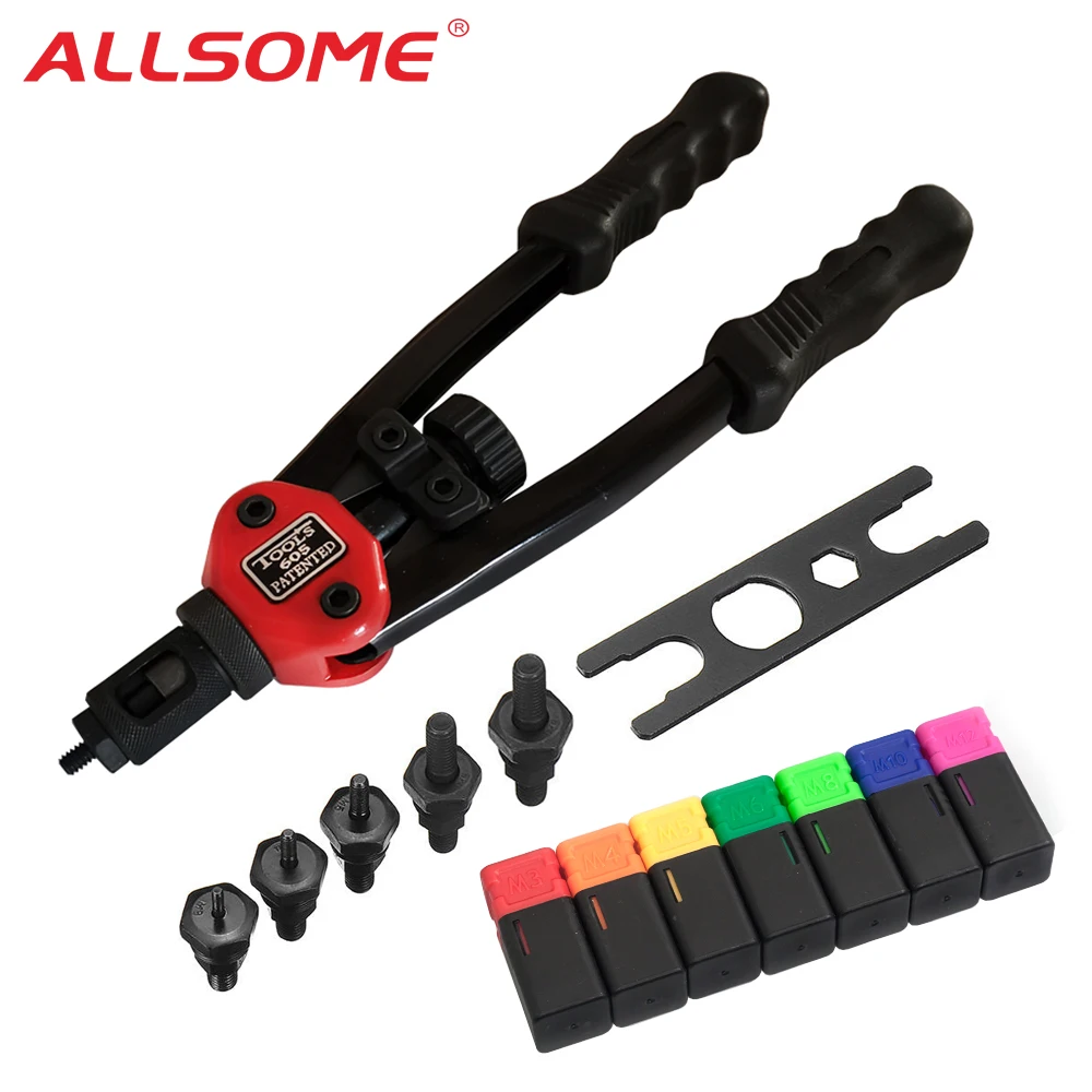 ALLSOME клепальный пистолет, инструмент для ручной вставки заклепок, гайка, ручной инструмент, мандрели 6-32 8-32 10-24 14-20 HT2597