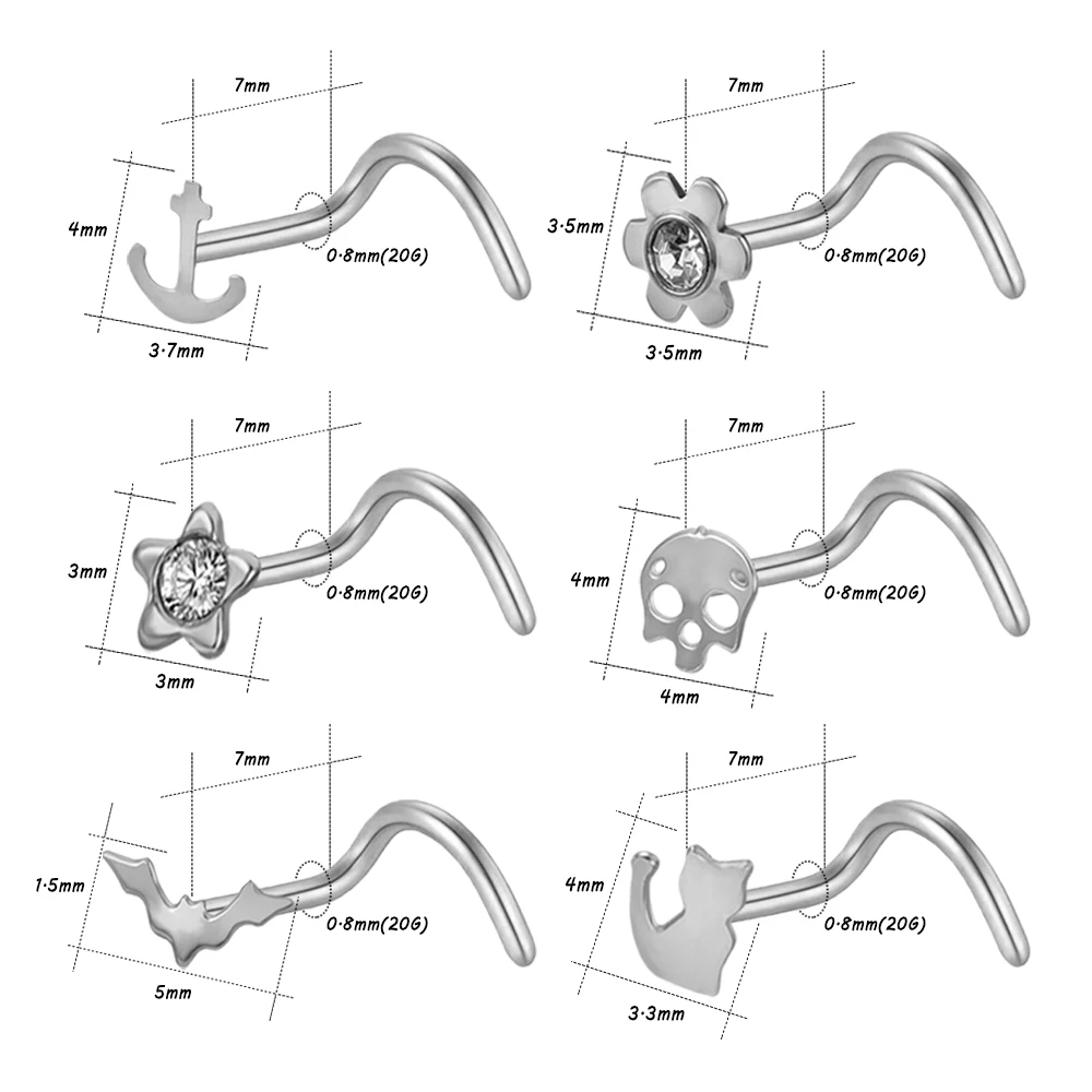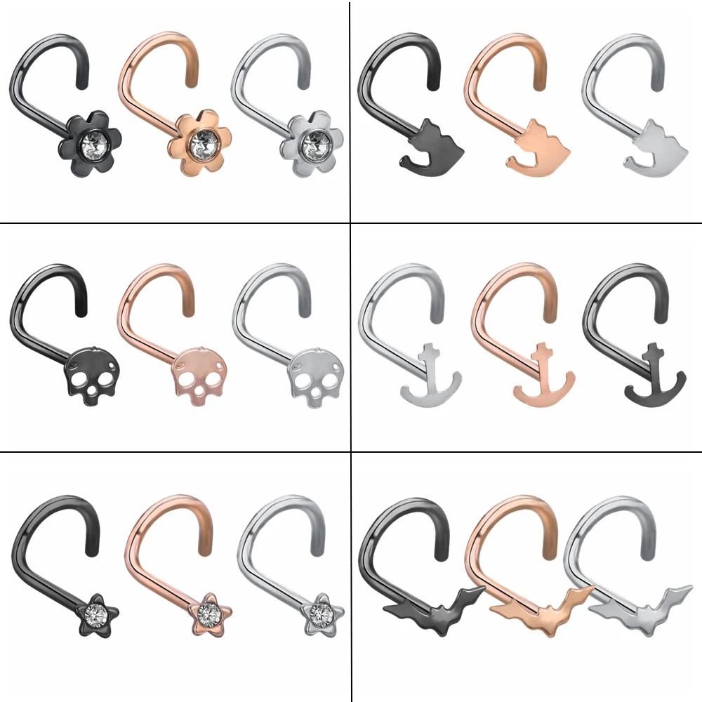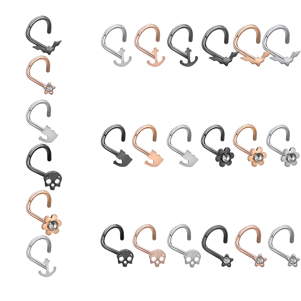 Кольцо-гвоздик для носа ZS, 36 шт.компл., с кристаллами, для женщин, мужчин, CZ, кошка, Череп, перегородка, пирсинг, хирургический крючок, пирсинг для носа, ювелирные изделия