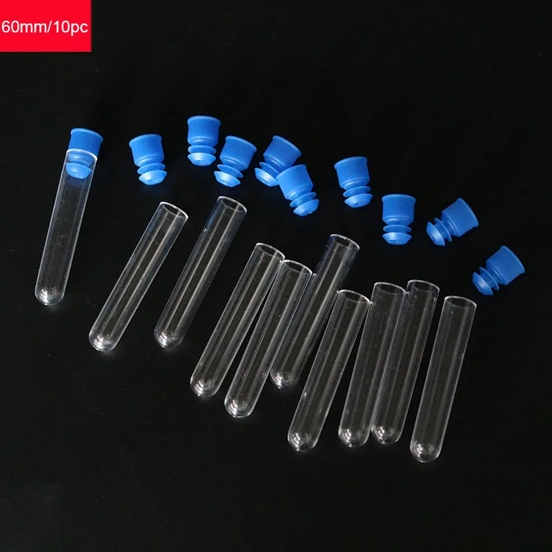 10 пластиковых прозрачных пробирок, лабораторные тестовые инструменты, Биохимический эксперимент, Школьное научное оборудование для измерения крови, 60 мм