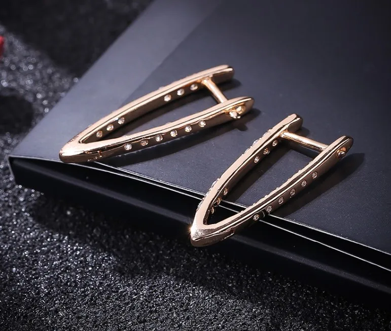 Серьги-кольца женские V-образные, золотые, кубический цирконий, геометрической формы, 2020
