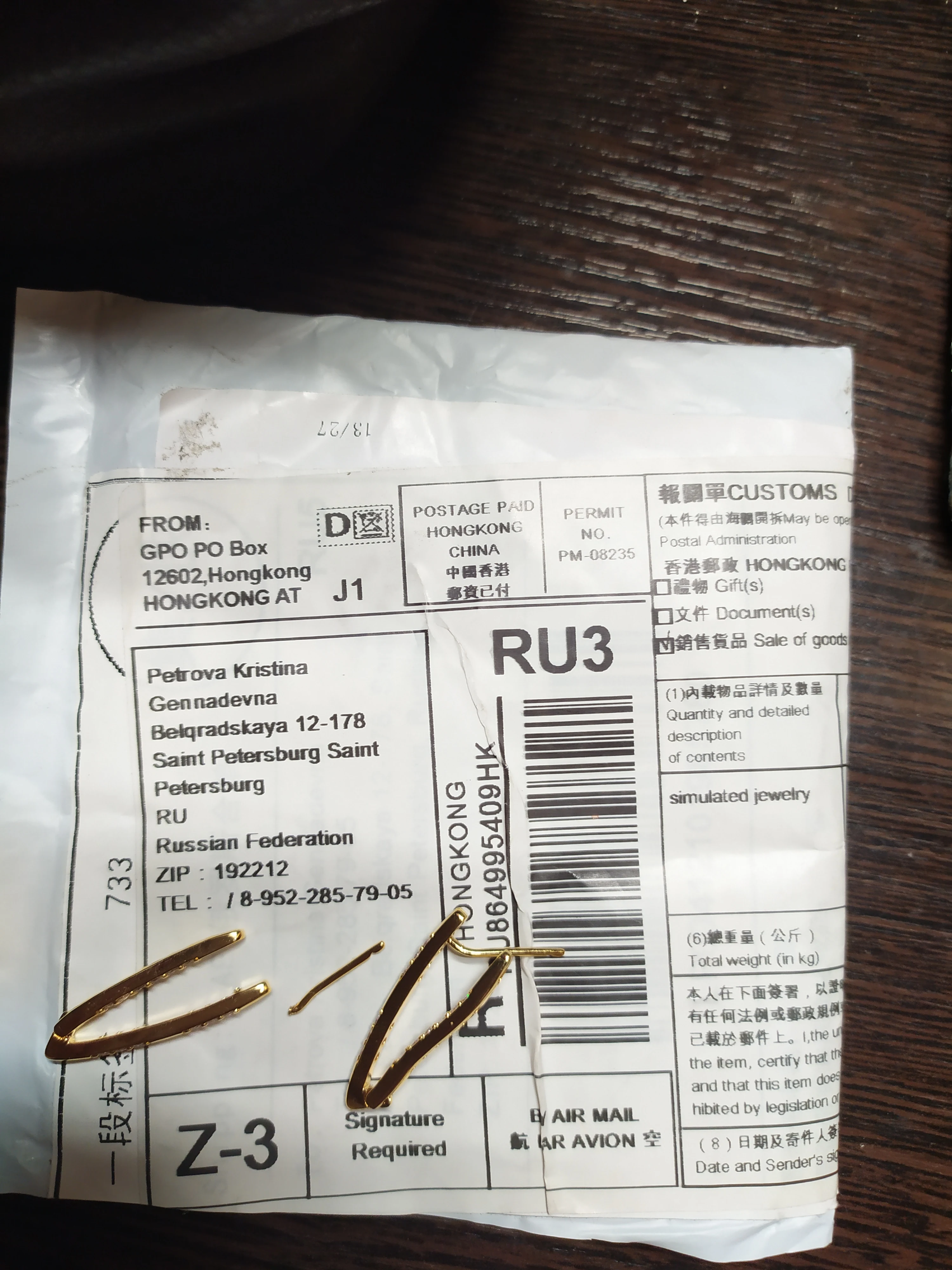 Страна: RU Metal Color: K5481S Доставка: Cainiao Super Economy 19.01.2021