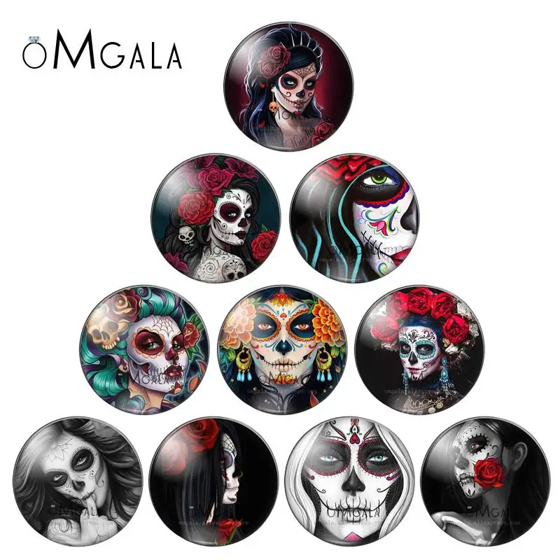 Красивый цветок череп скелет невесты девушки фото стеклянные драгоценные камни кабошон купол демонстрация плоская спина DIY Хэллоуин ювелирные изделия Аксессуары 8-30