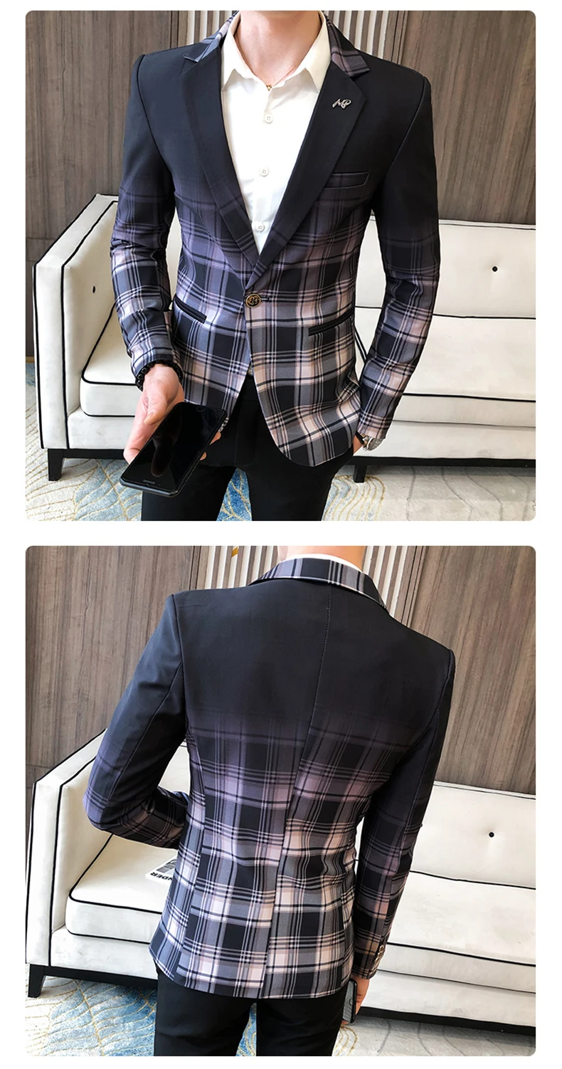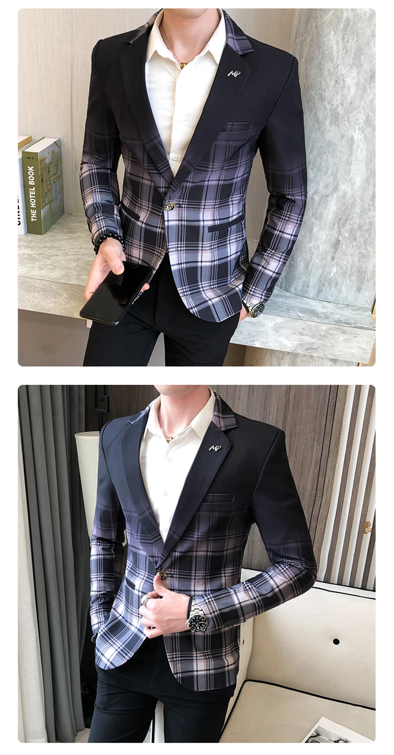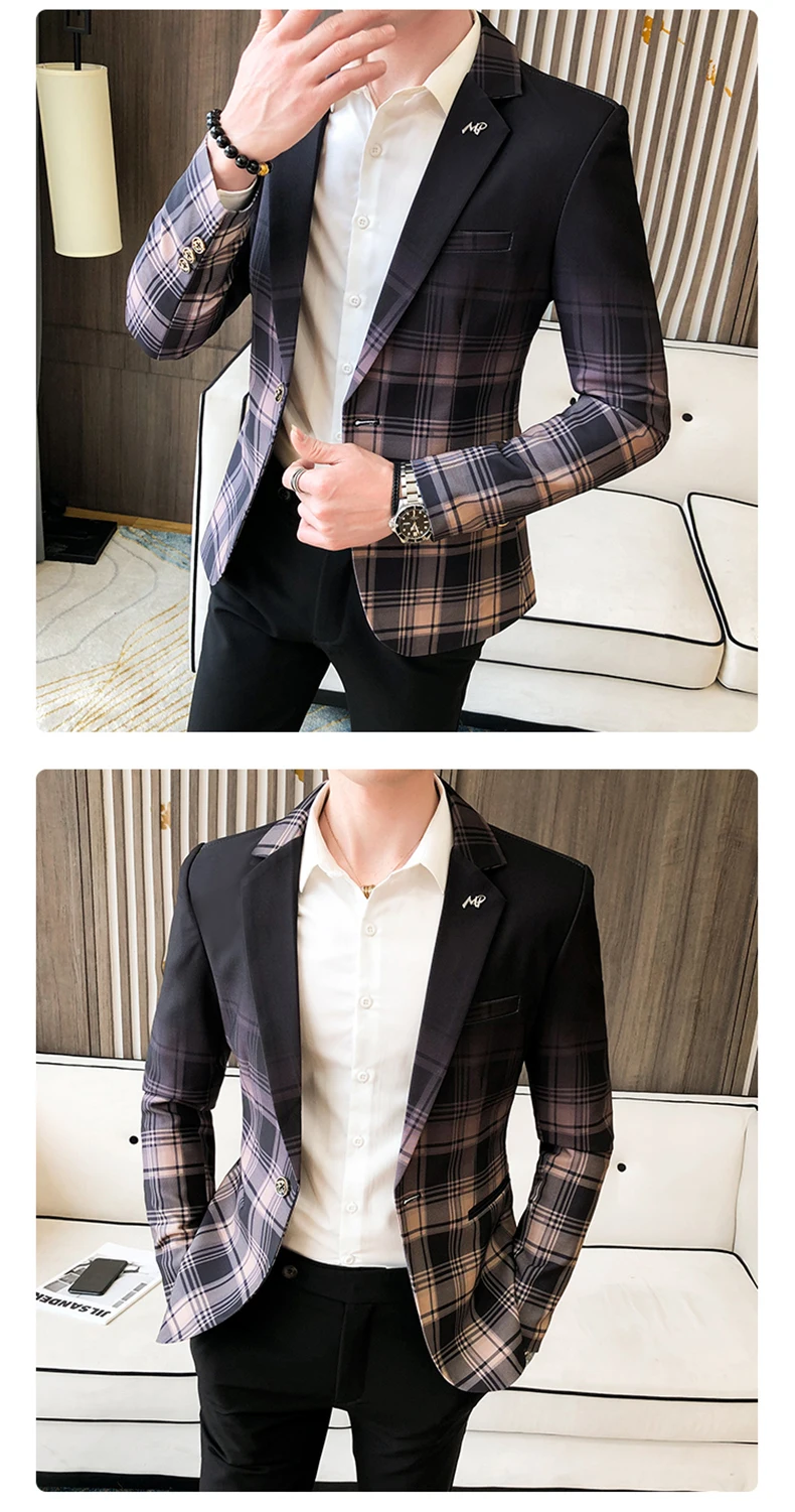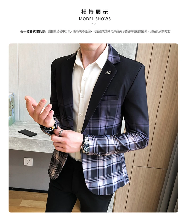 Мужской Блейзер, приталенный Блейзер в клетку с градиентом, весна 2020