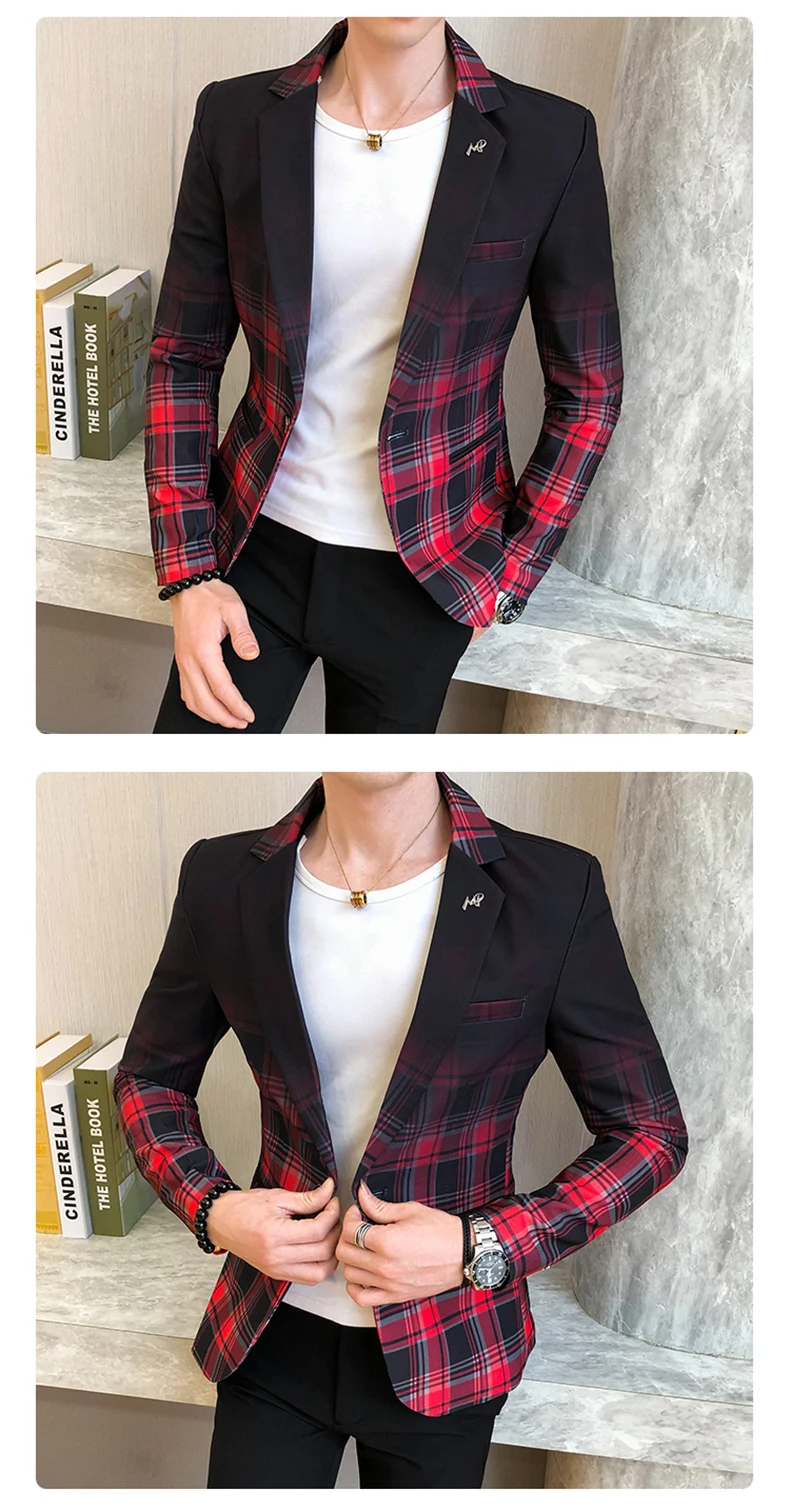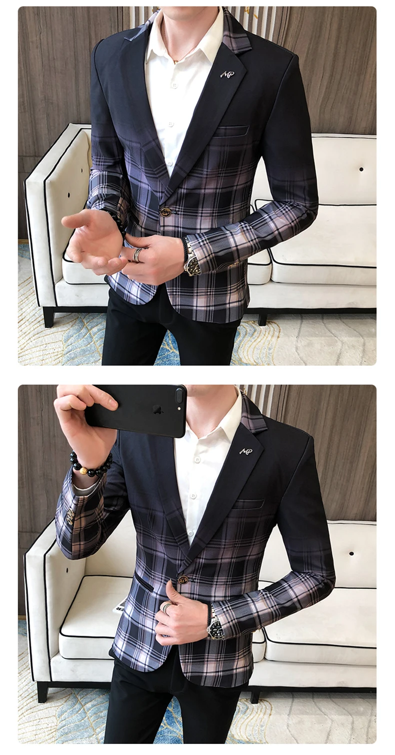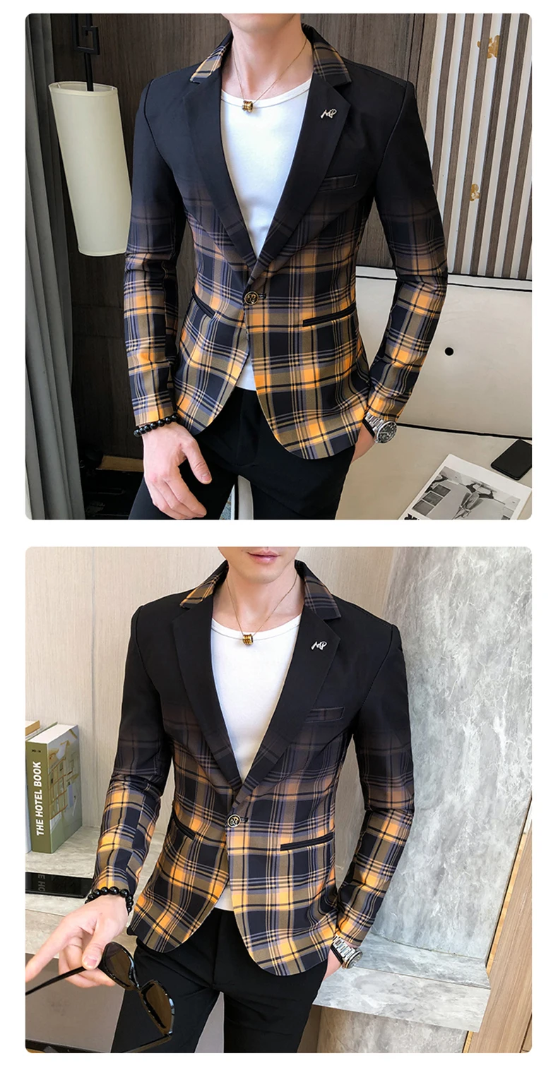Мужской Блейзер, приталенный Блейзер в клетку с градиентом, весна 2020