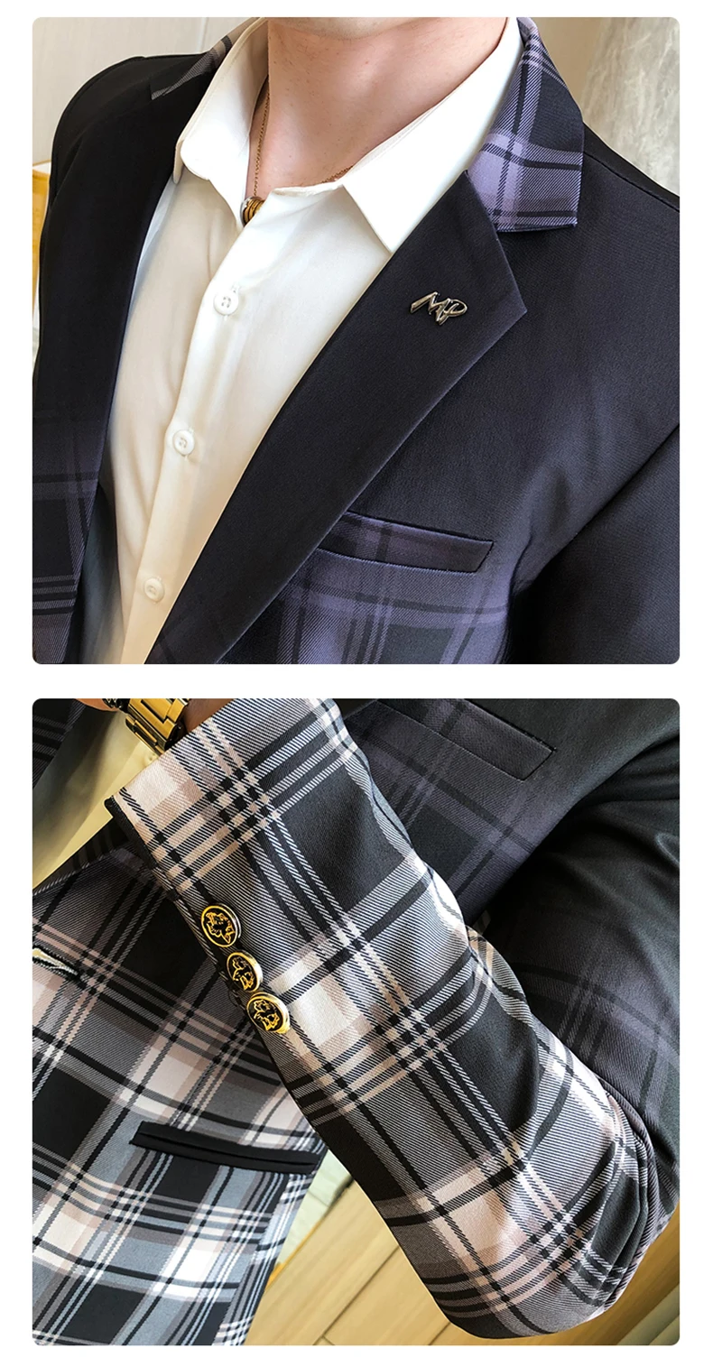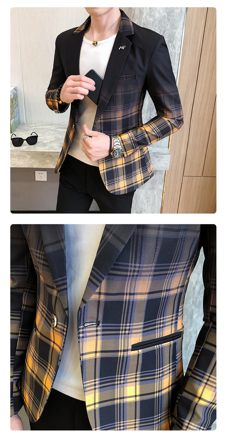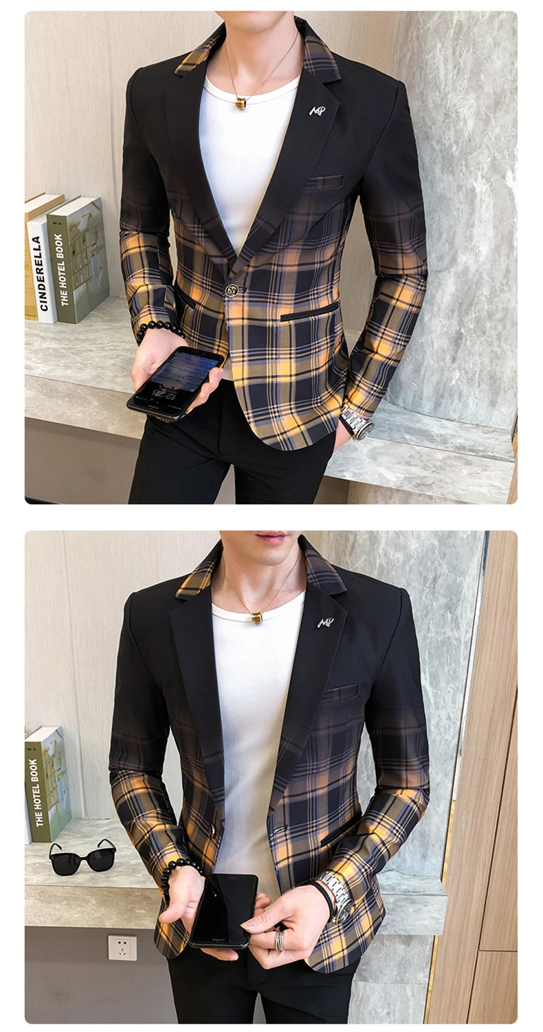 Весна 2021, мужской Клетчатый Блейзер, Модный деловой Повседневный ...