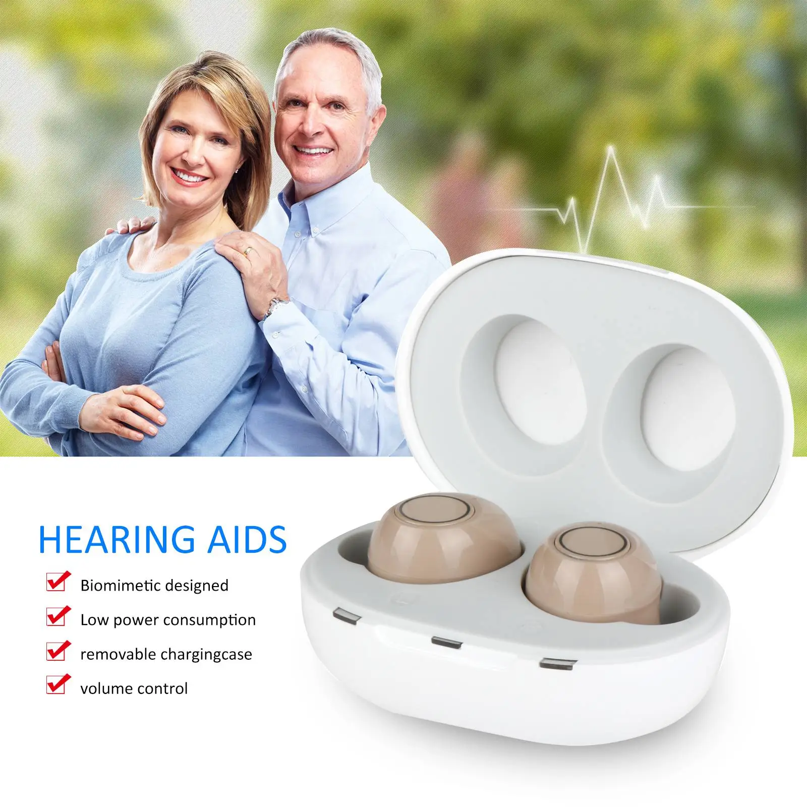 Невидимый мини-слуховой аппарат ITE с зарядкой от USB, 1 пара, усилитель звука, улучшенный Регулируемый тон для глухих пожилых людей