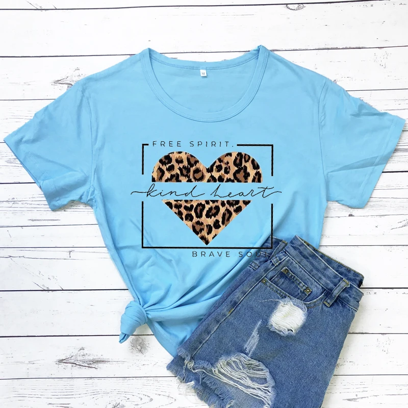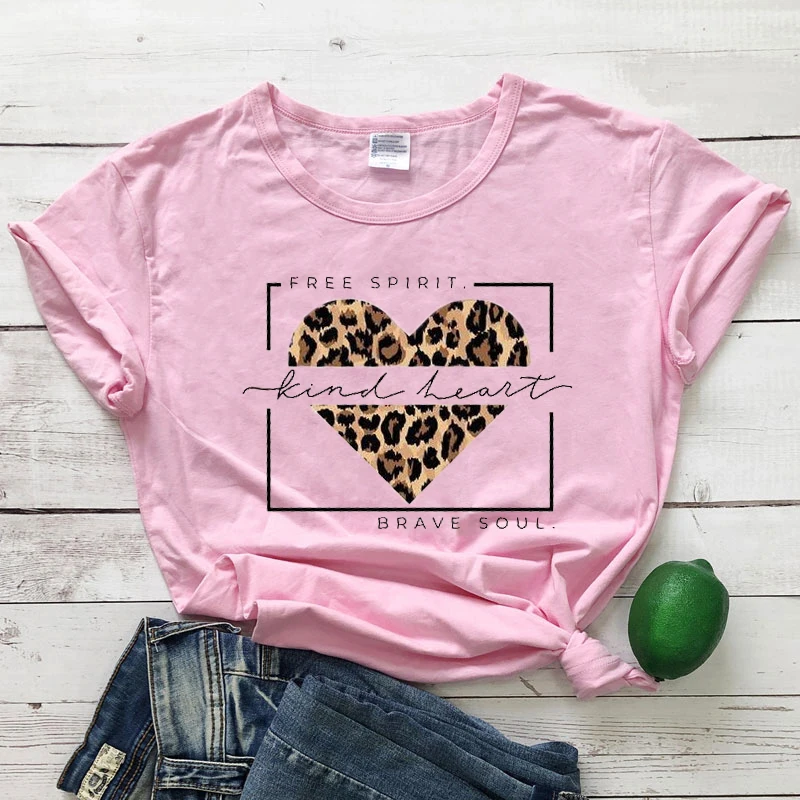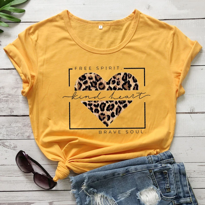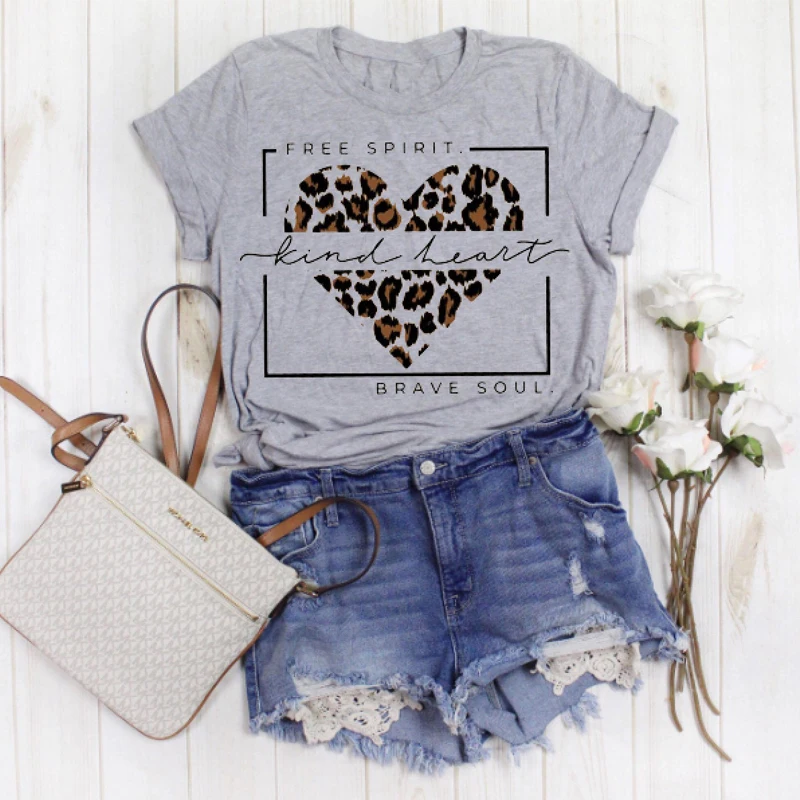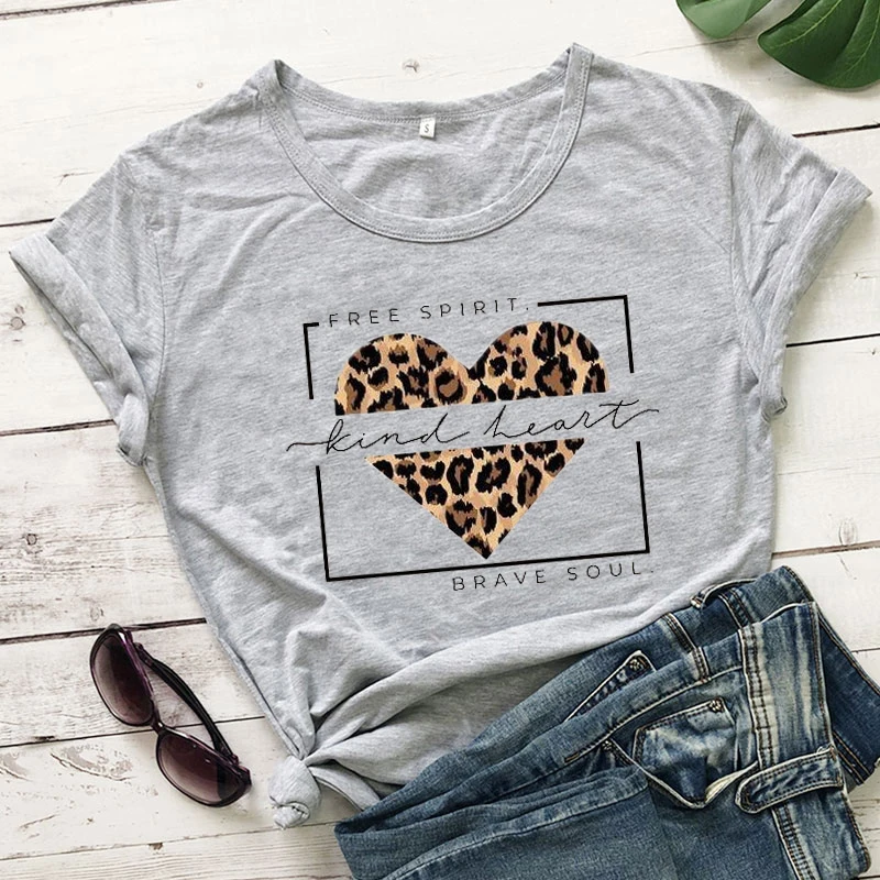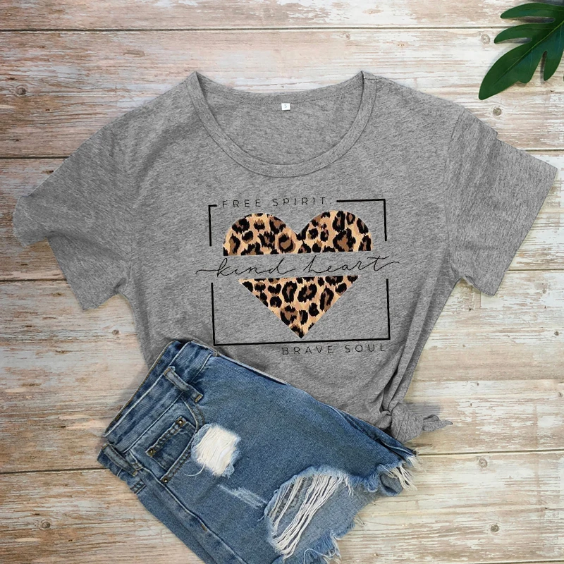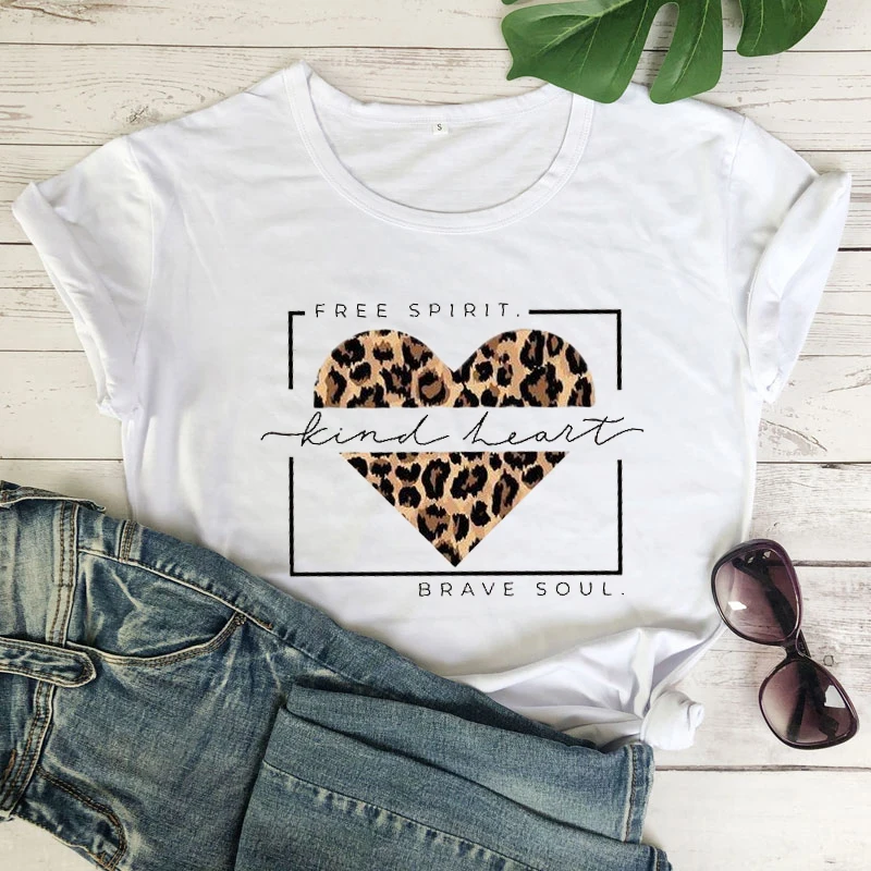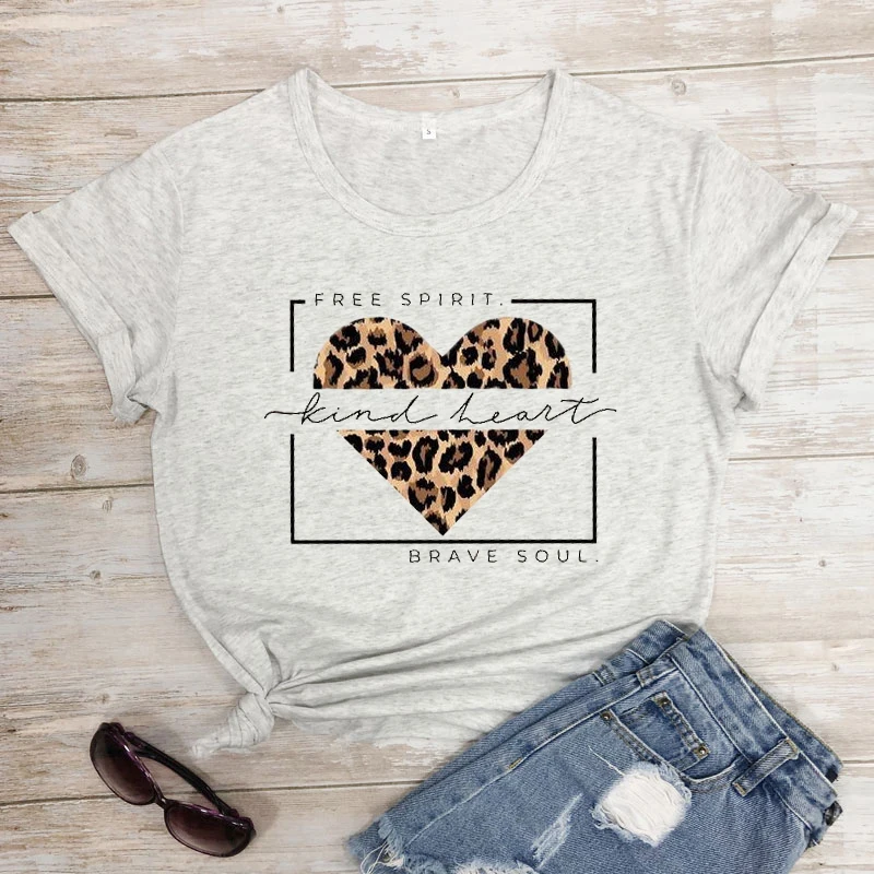 Свободный дух Вид сердце Brave Soul футболки в клетку, в виде леопардовых сердец ко Дню Св Кристиан футболка милые женские Графический положительный топ, футболка, рубашка