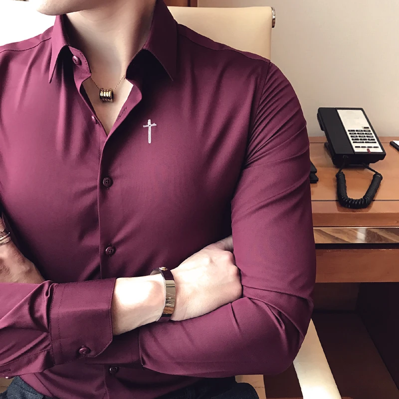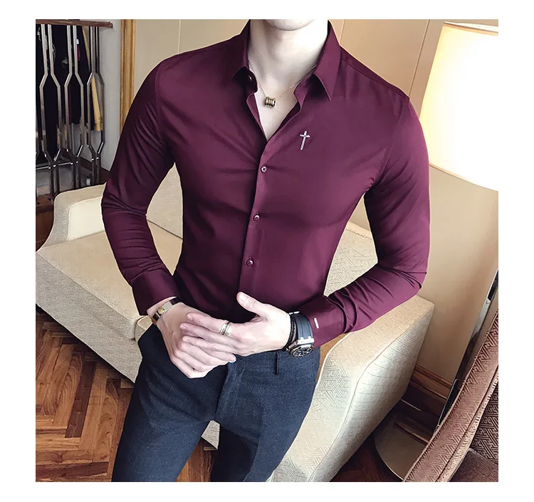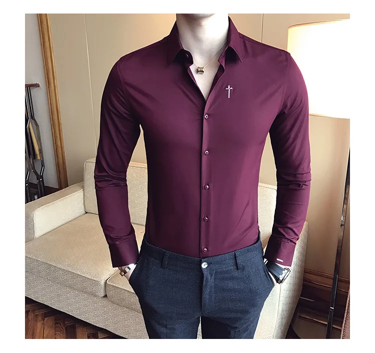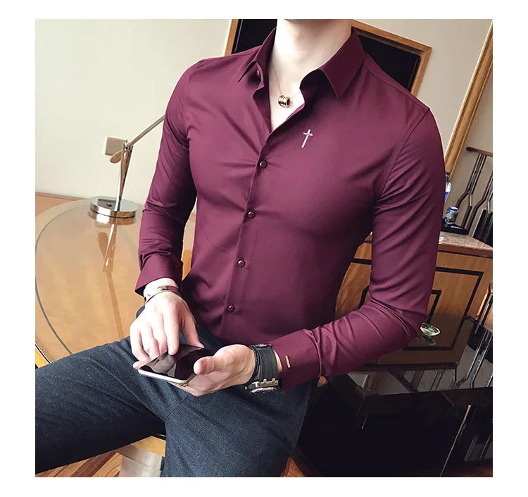 Бордовые классические рубашки, мужские свадебные рубашки, элегантные мужские рубашки для жениха и джентльмена, белая офисная одежда, стильные базовые платья