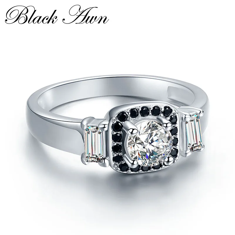 Женское Обручальное кольцо с черным камнем BLACK AWN, обручальное кольцо из серебра 925 пробы с черным и белым камнем, 3,2 г, C414